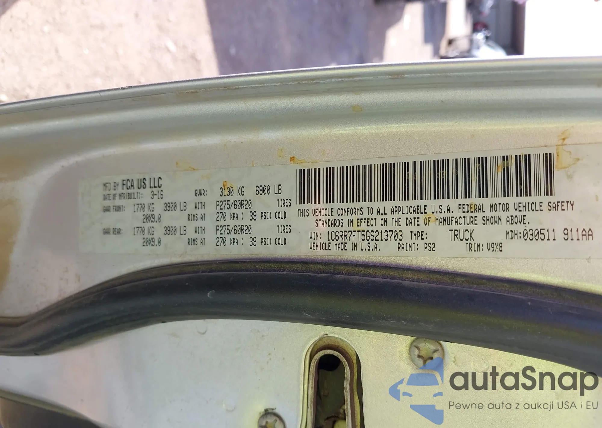 • VIN 1C6RR7FT5GS213703