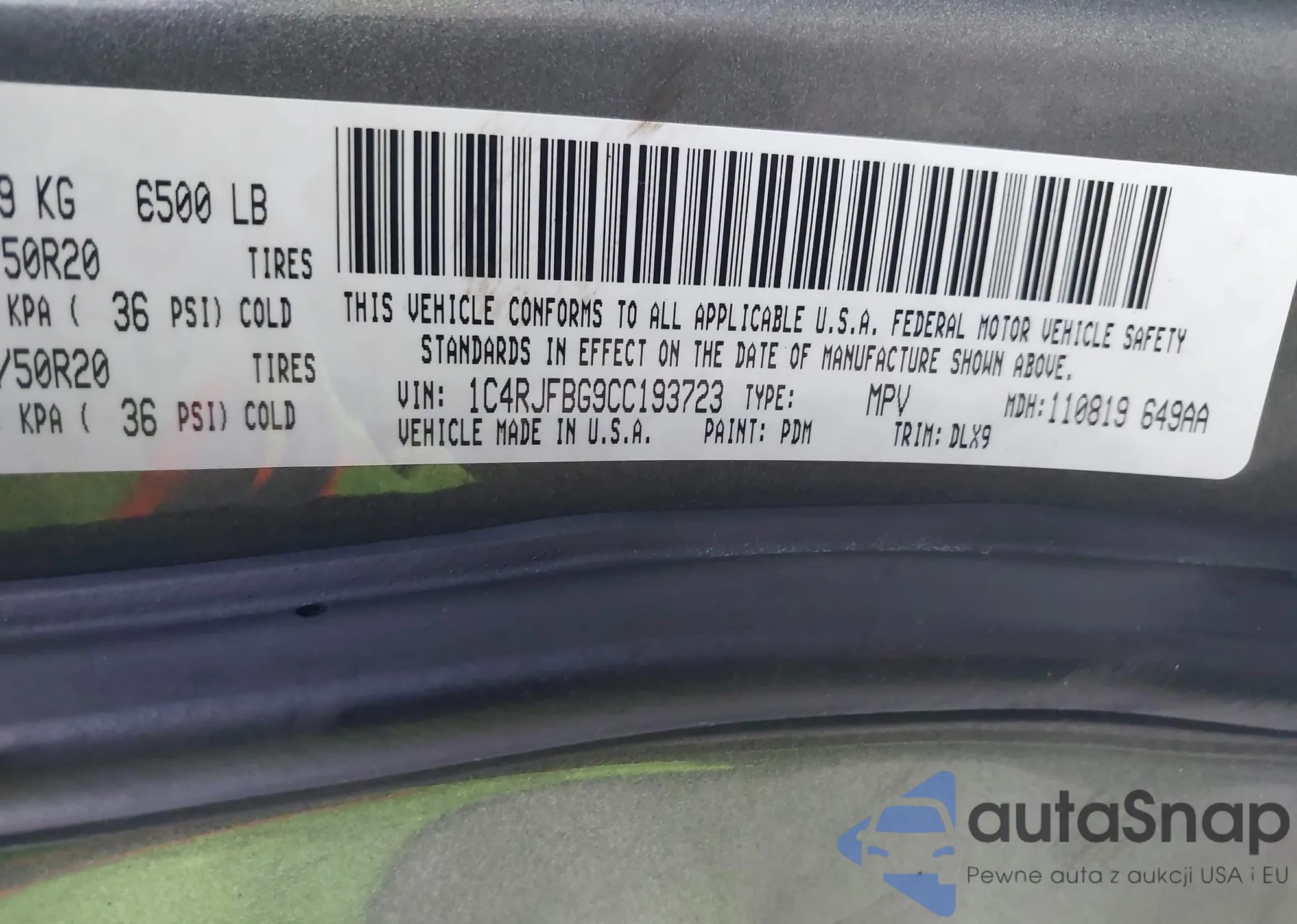 • VIN 1C4RJFBG9CC193723