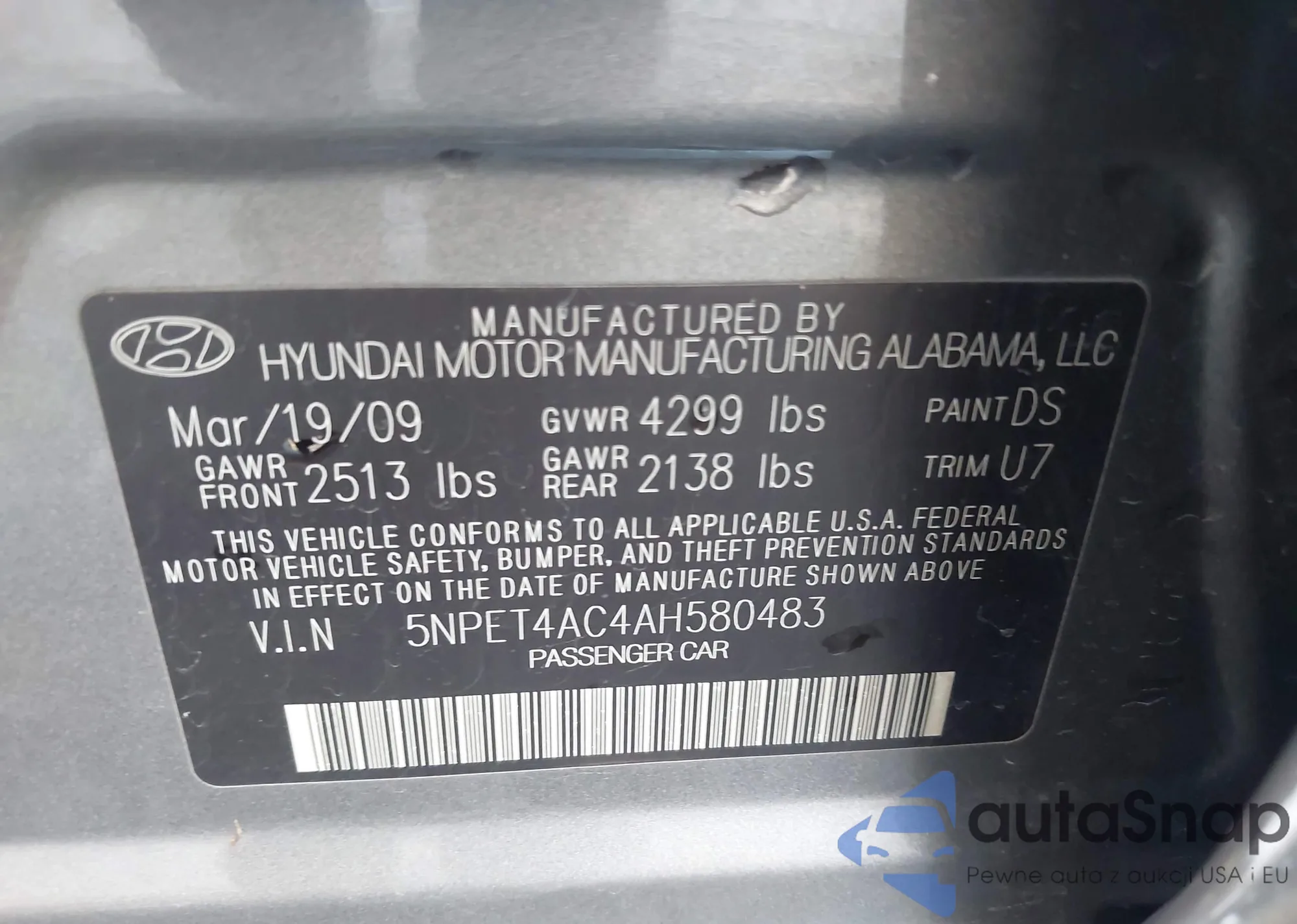 LOT: 43720406 VIN: 5NPET4AC4AH580483