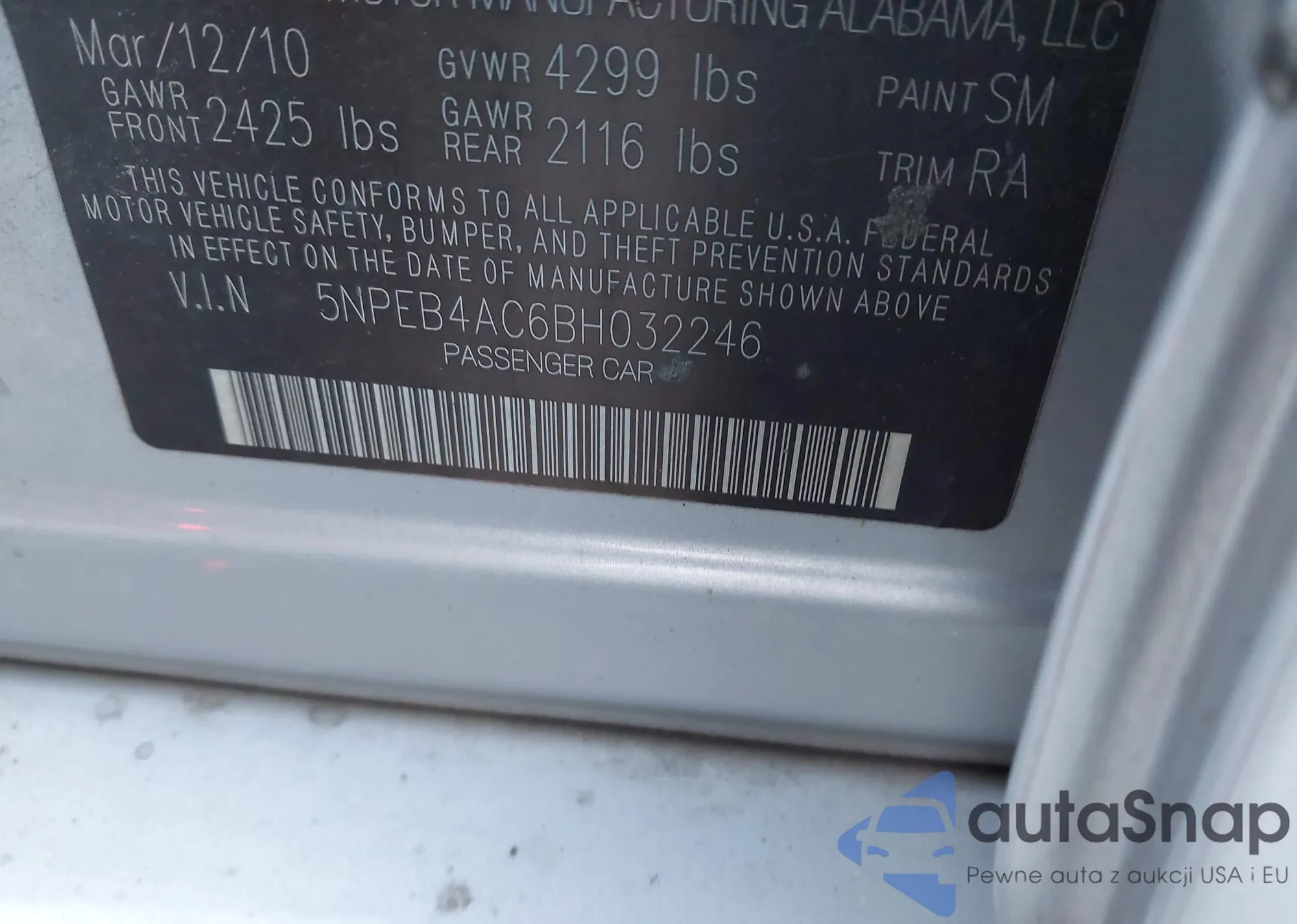 • VIN 5NPEB4AC6BH032246