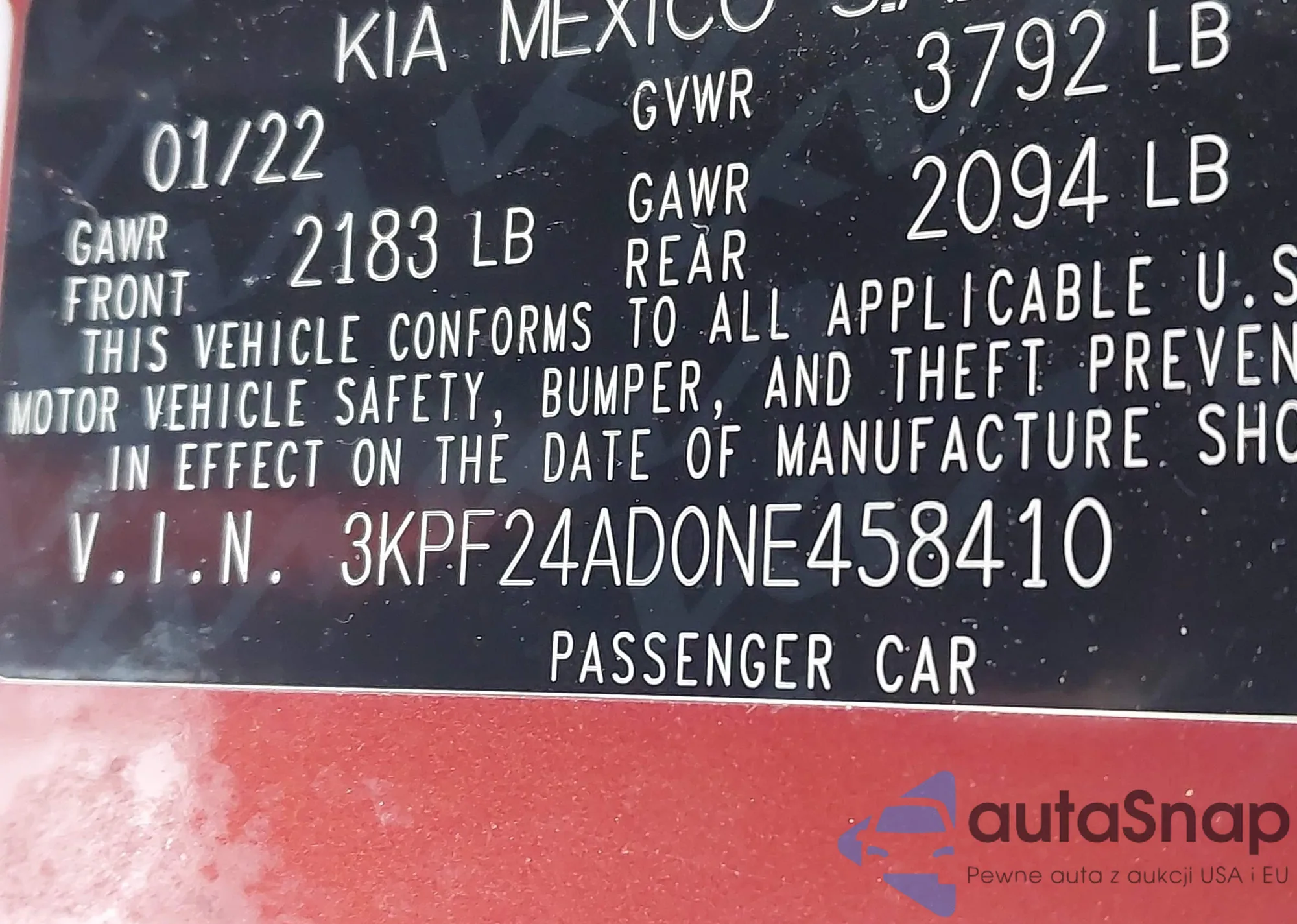 • VIN 3KPF24AD0NE458410