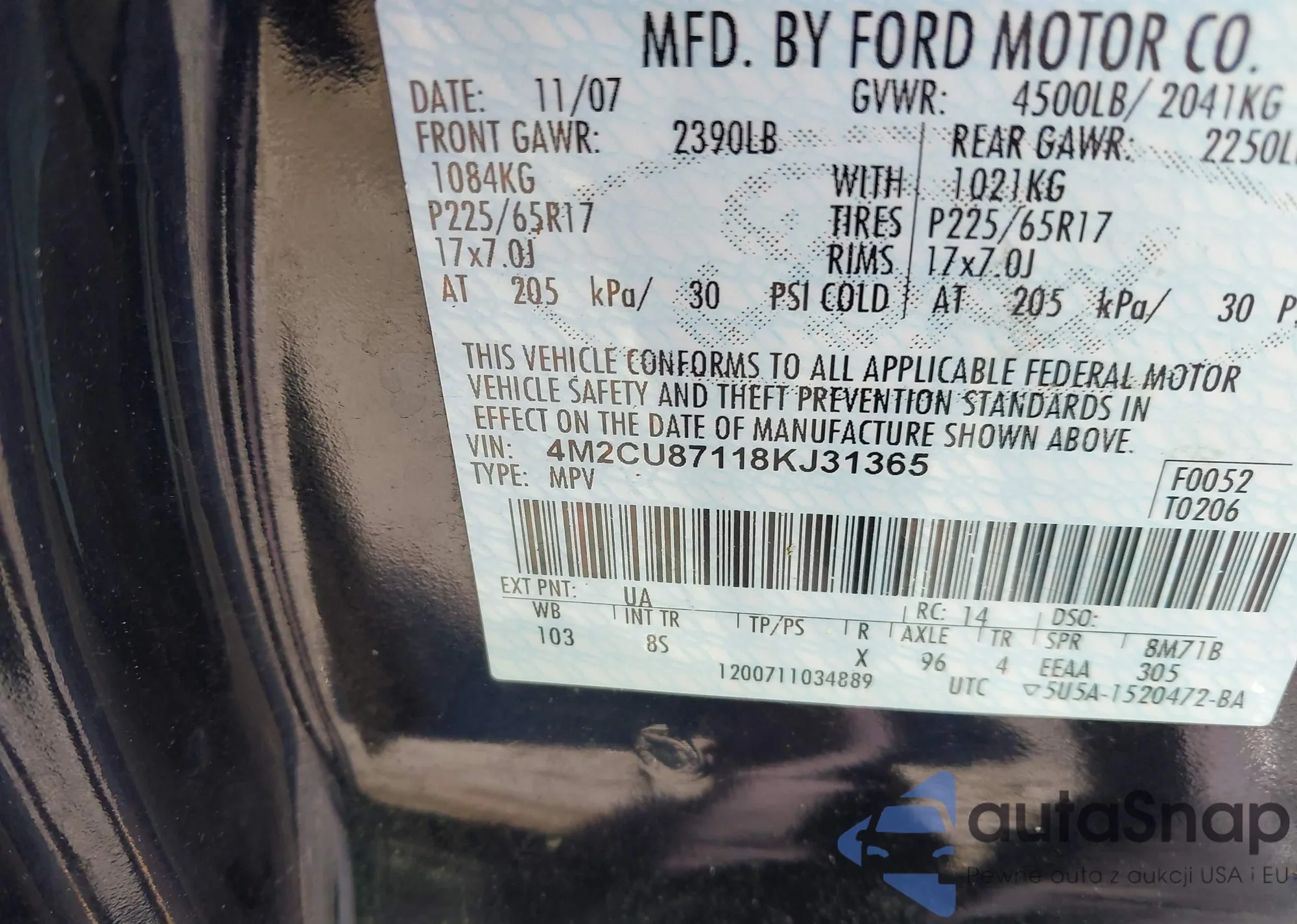 • VIN 4M2CU87118KJ31365