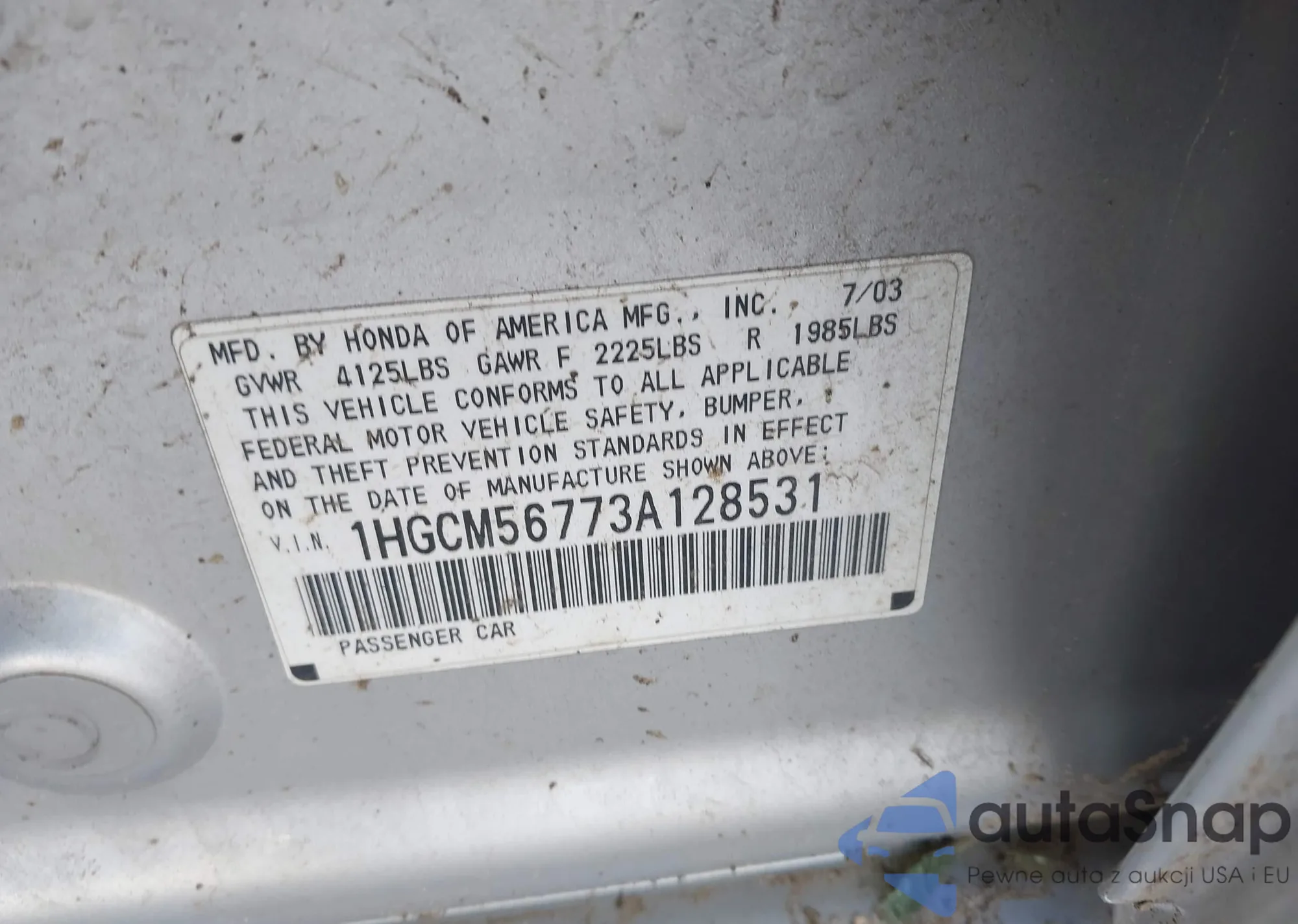 LOT: 43496659 VIN: 1HGCM56773A128531