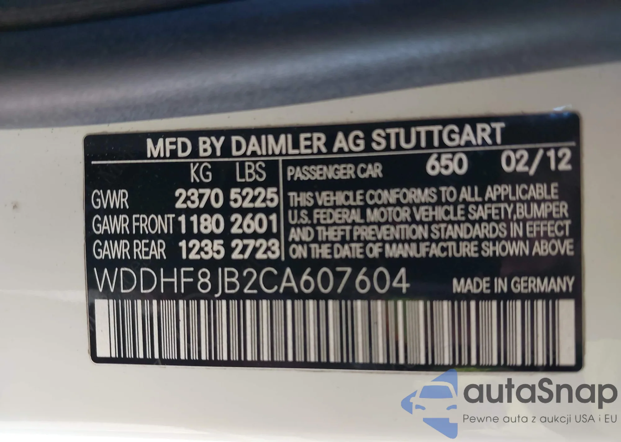 LOT: 43503572 VIN: WDDHF8JB2CA607604