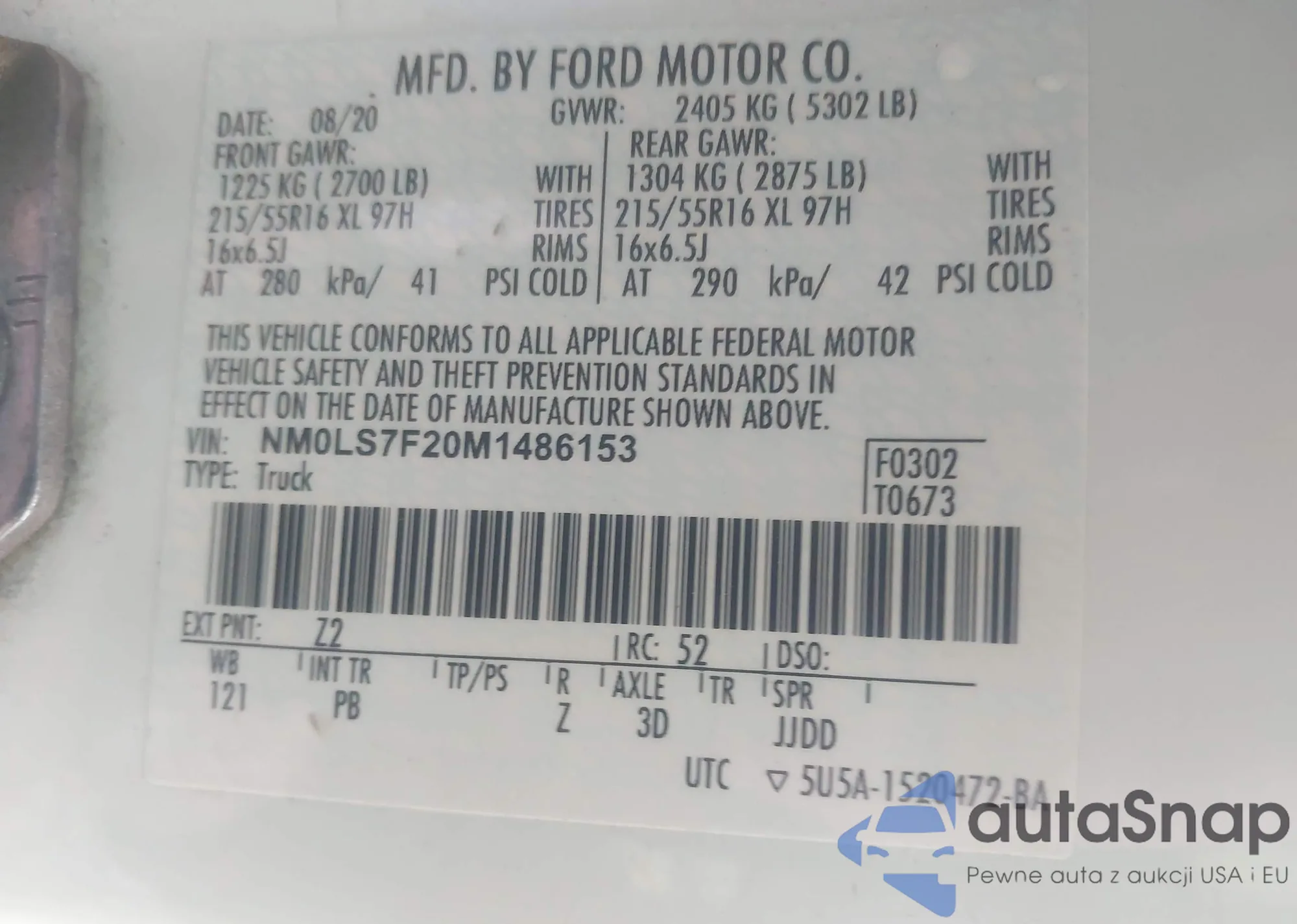 LOT: 43479885 VIN: 1FATP8EM7G5218362