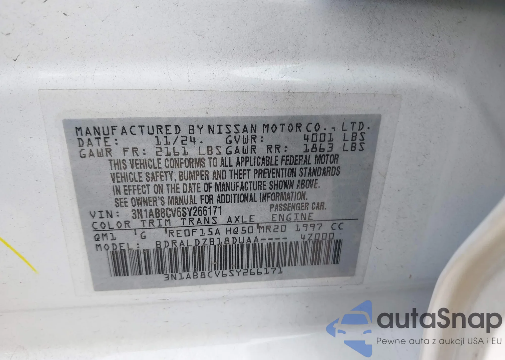 • VIN 3N1AB8CV6SY266171