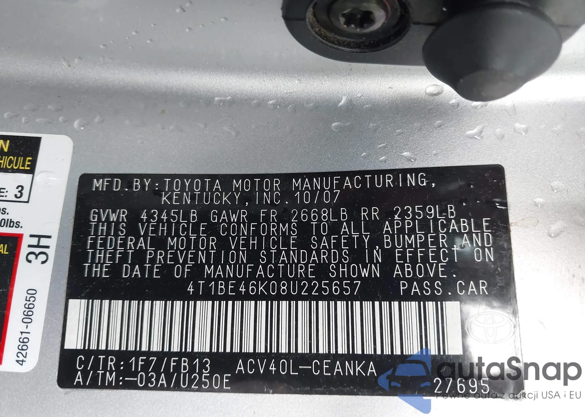LOT: 43748218 VIN: 4T1BE32K54U310701