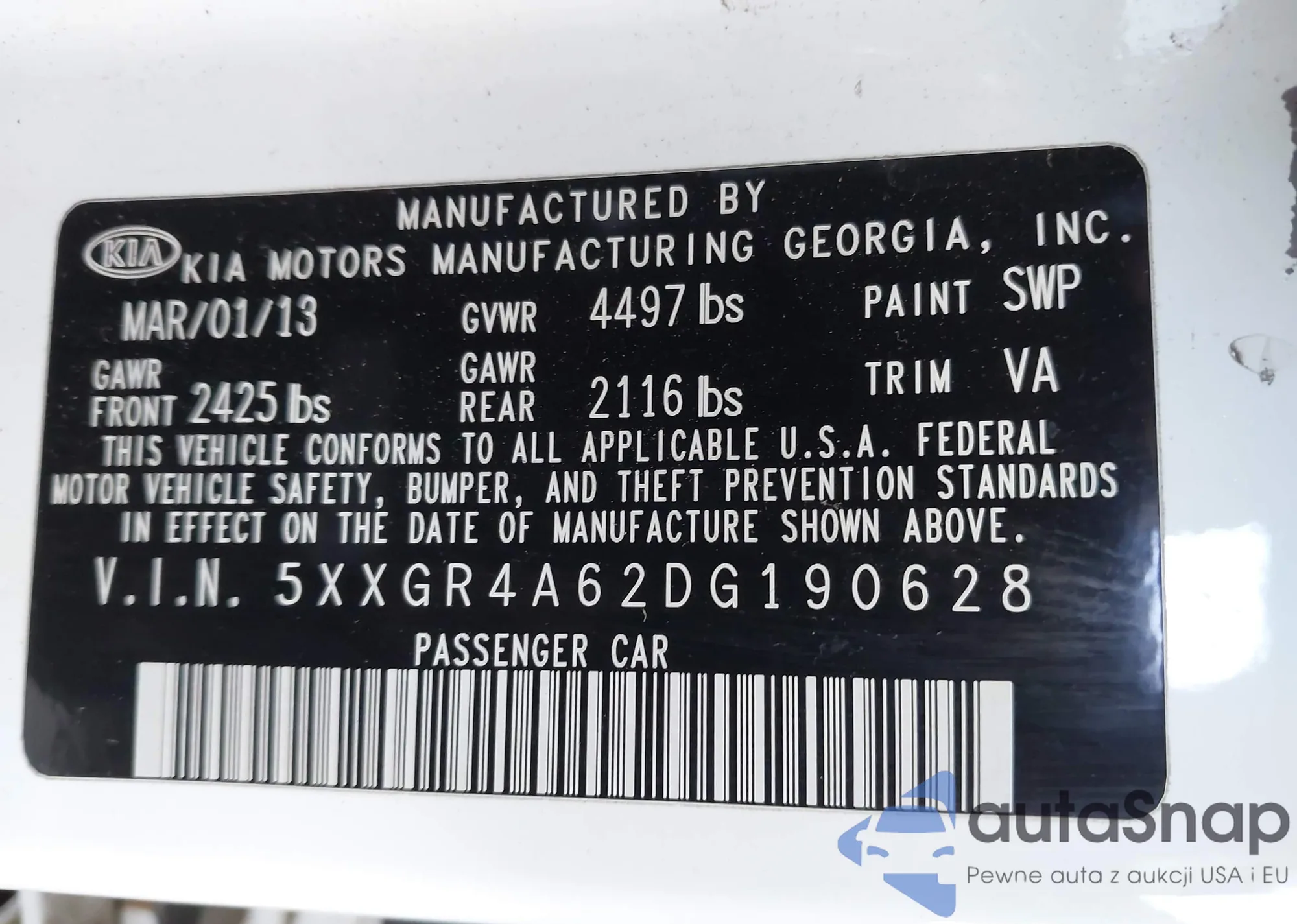 • VIN 5XXGR4A62DG190628