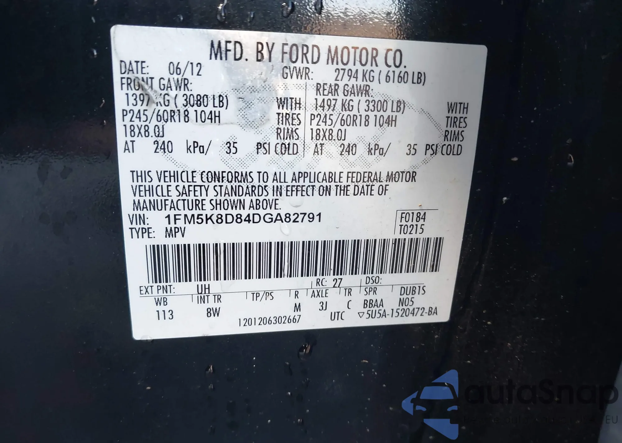 • VIN 1FM5K8F84DGA28825