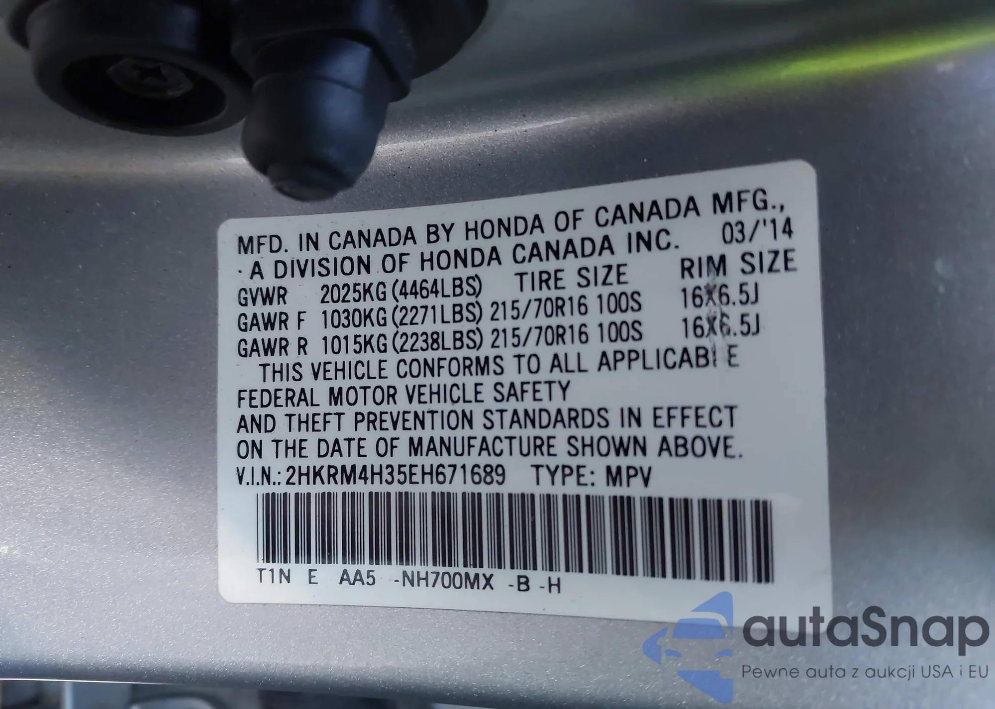 • VIN 2HKRM4H35EH671689