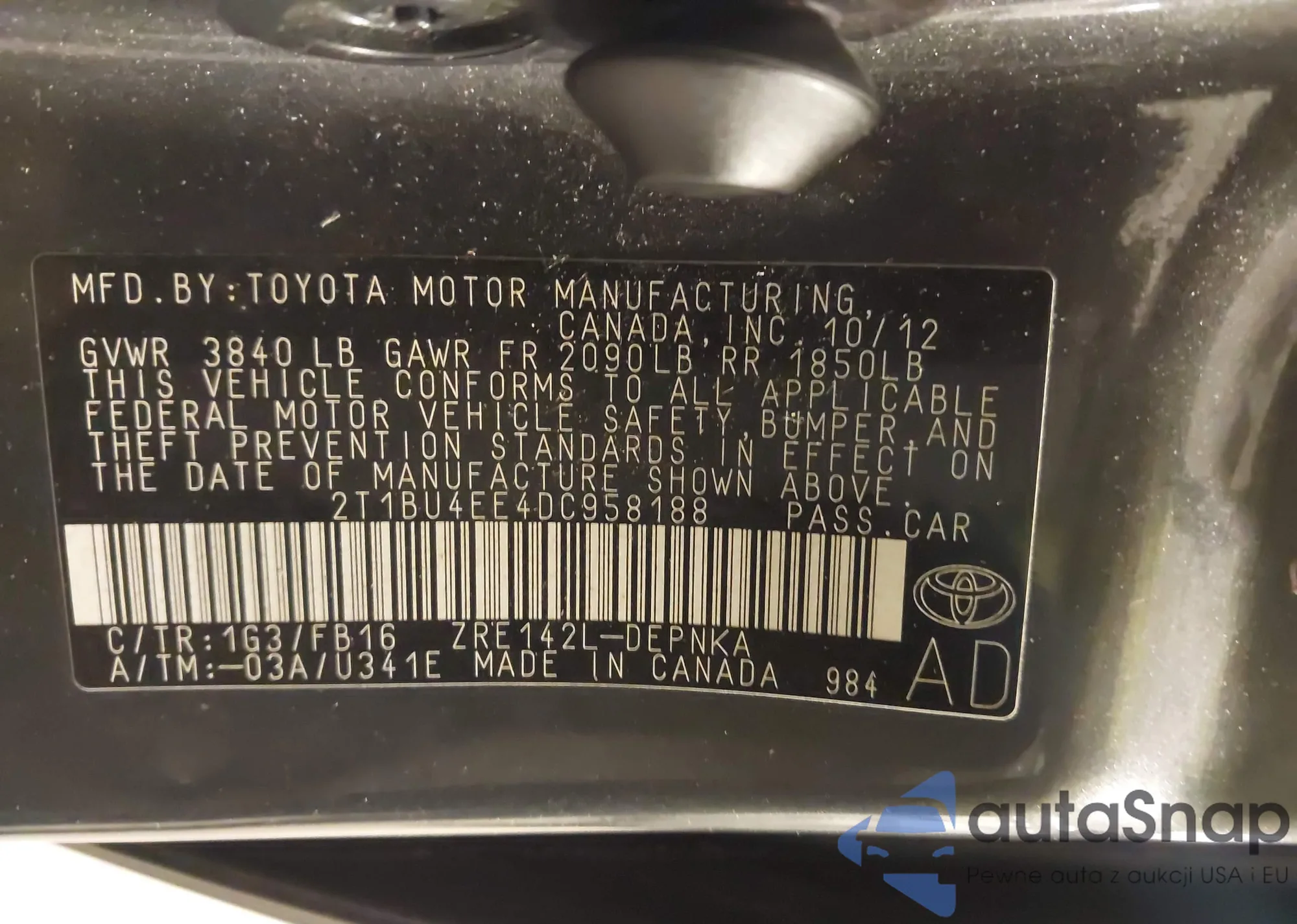 • VIN 2T1BU4EE4DC958188