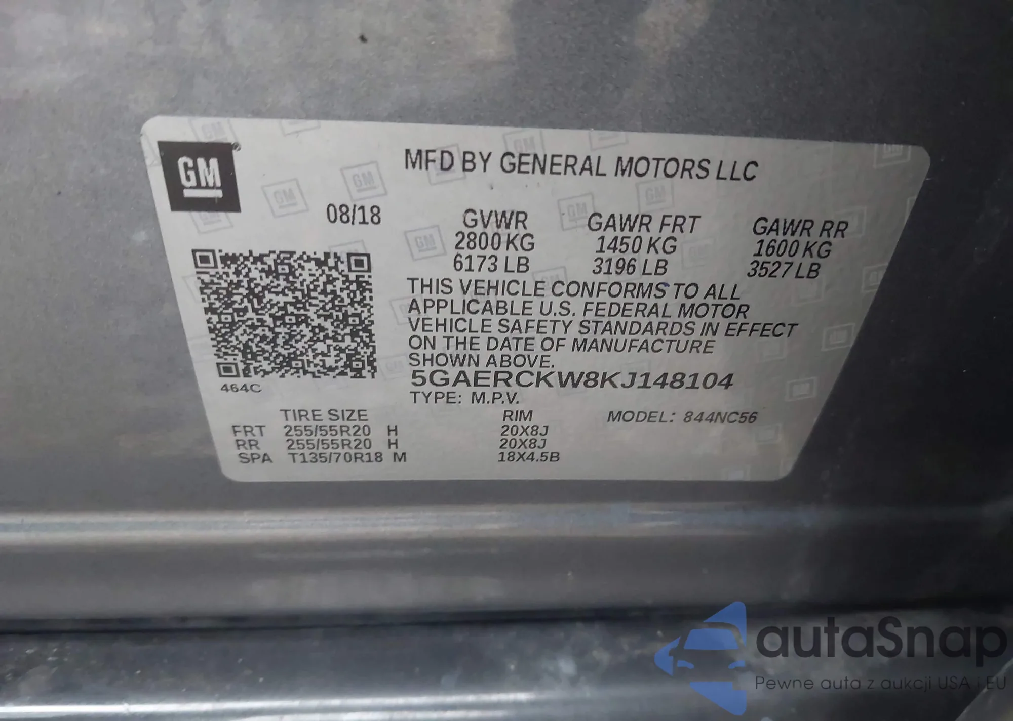 • VIN 5GAERCKW8KJ148104