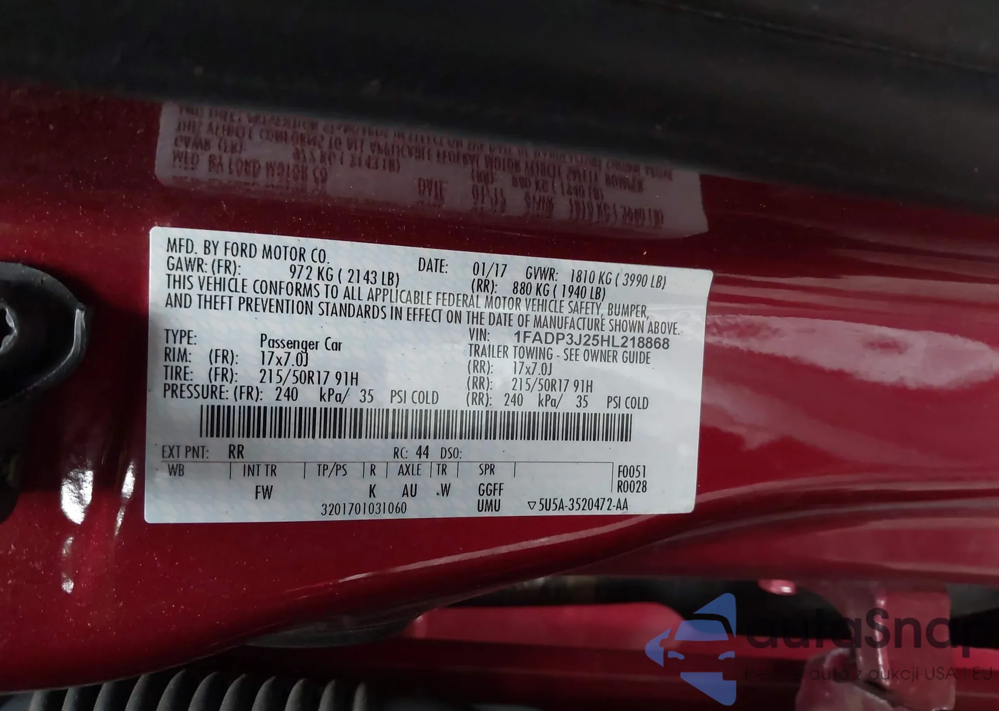 • VIN 1FADP3J25HL218868
