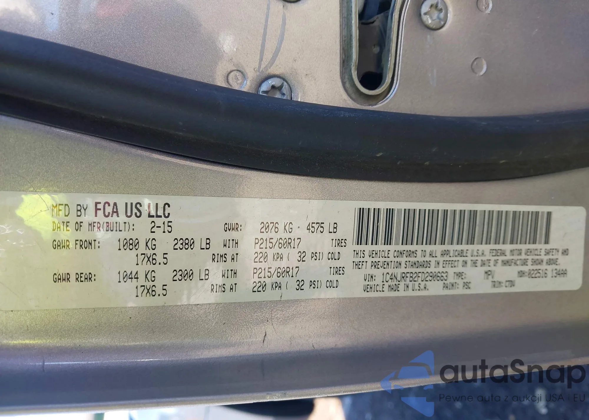 • VIN 1C4NJRFB2FD290663