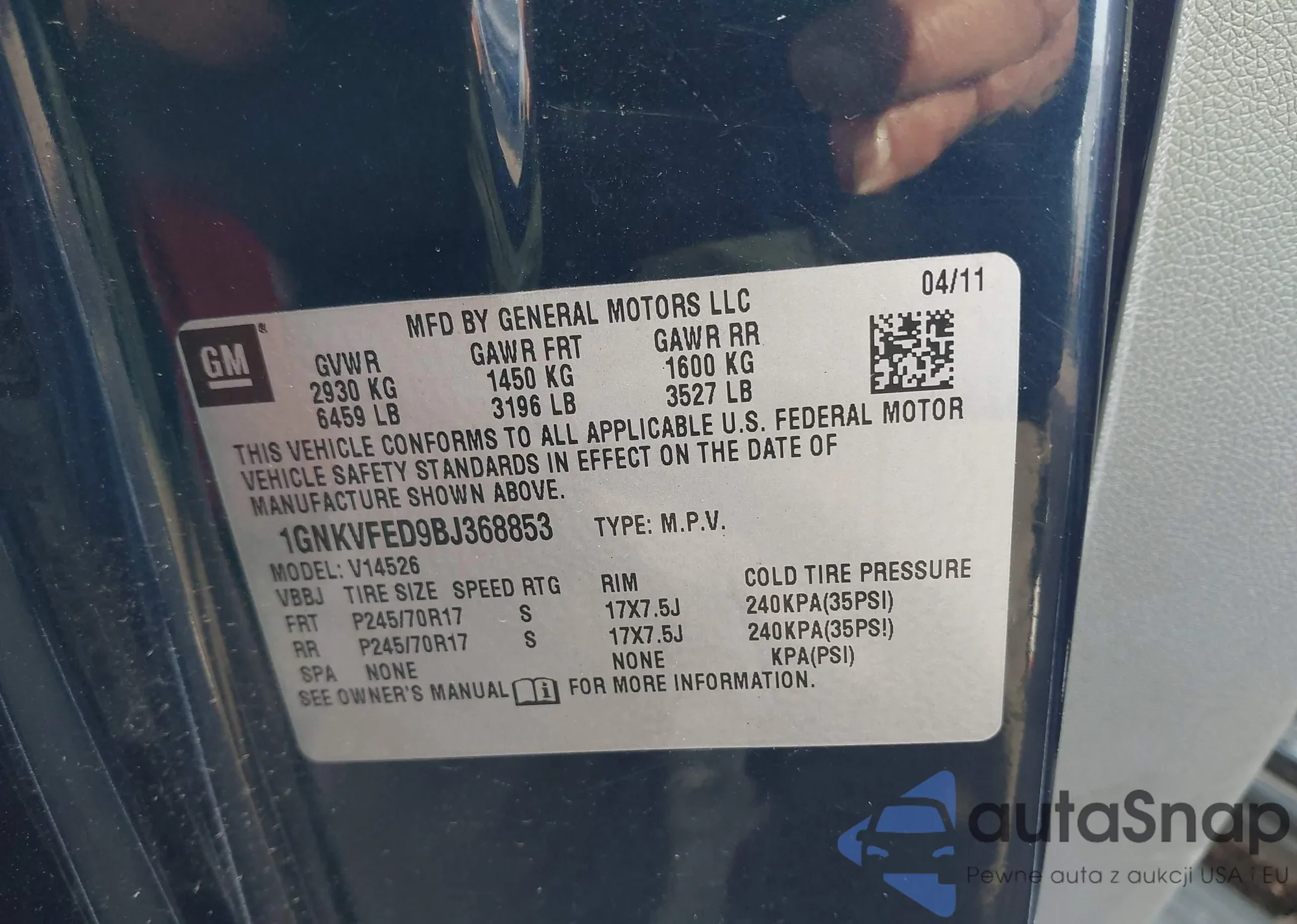 • VIN 1GNKVFED9BJ368853
