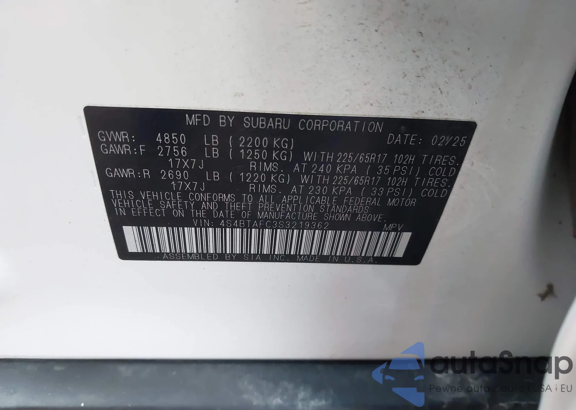 LOT: 43718604 VIN: 4S3BH646036302814