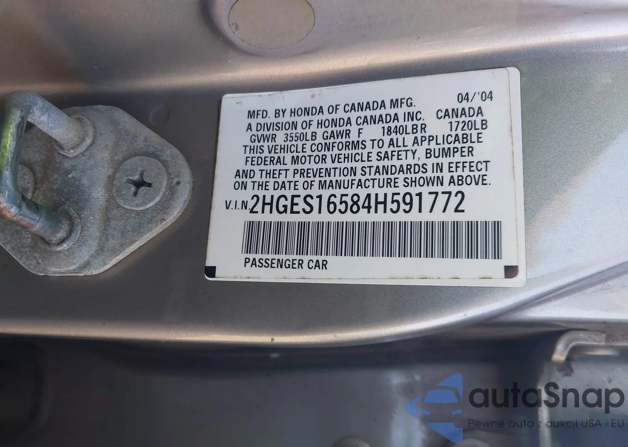 LOT: 43800599 VIN: 19UUA66227A040354