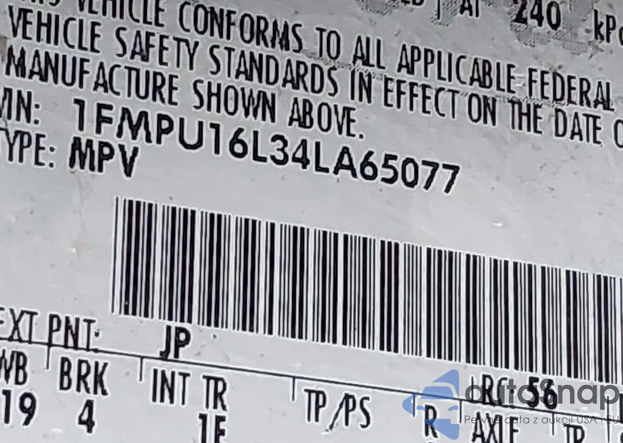 • VIN 1FMPU16L1YLC00434