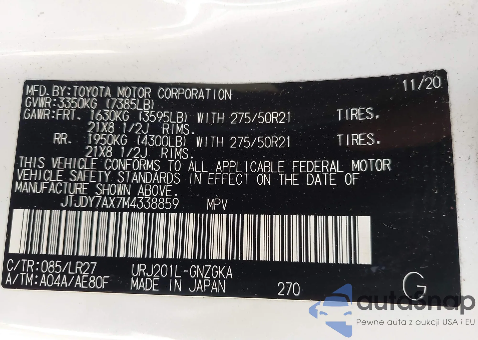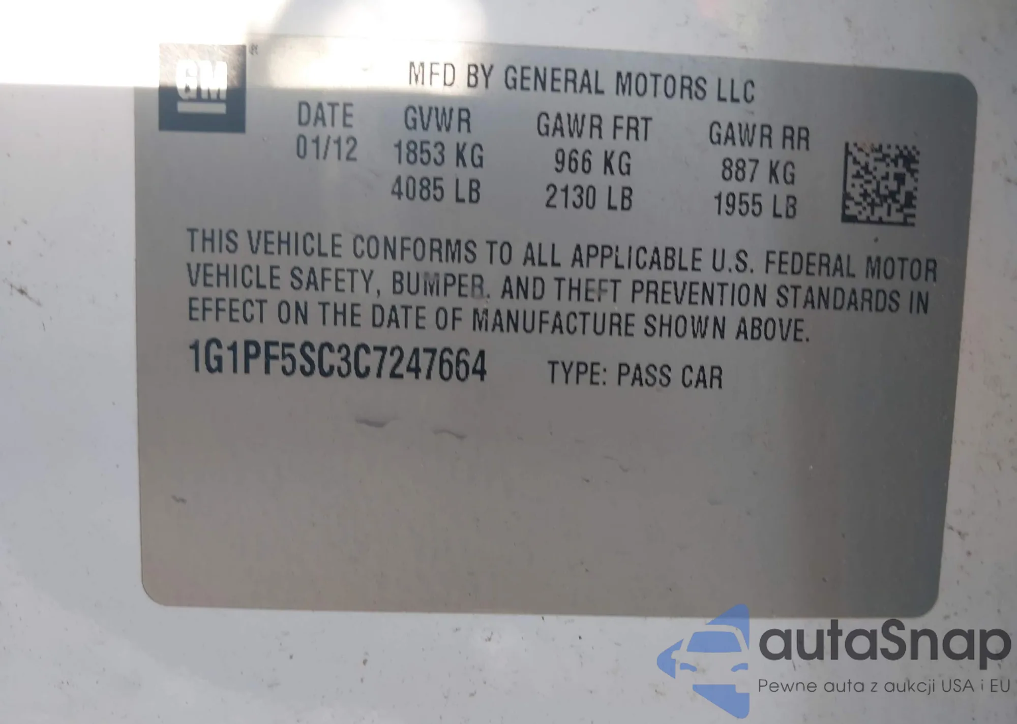 LOT: 43105680 VIN: 1G1PF5SC3C7247664