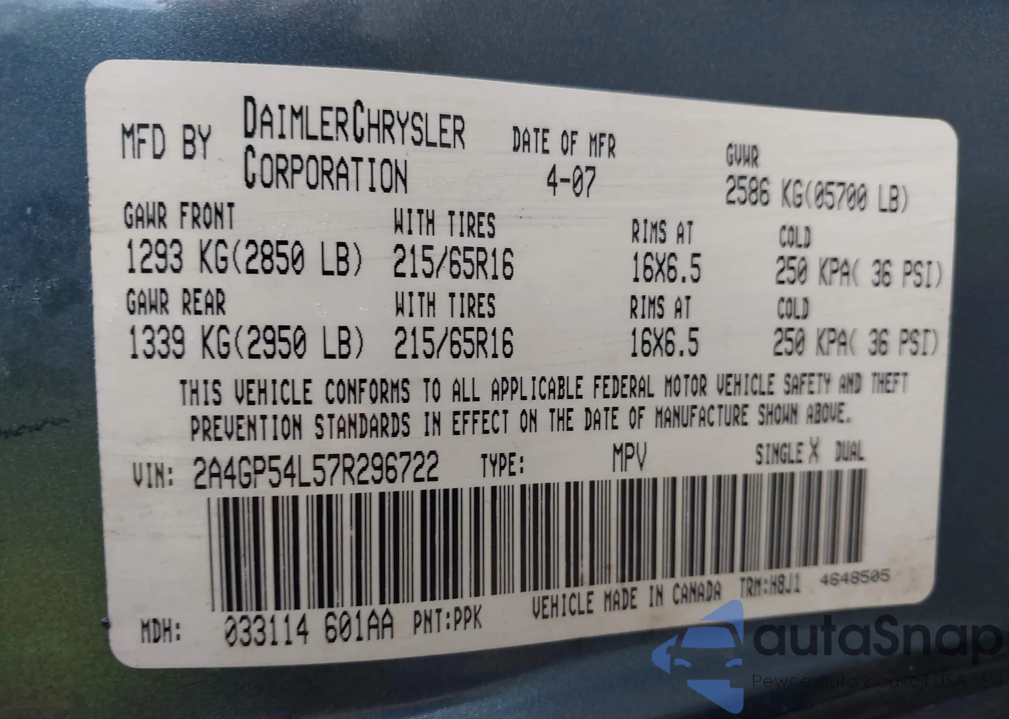 • VIN 2A4GP54L57R296722