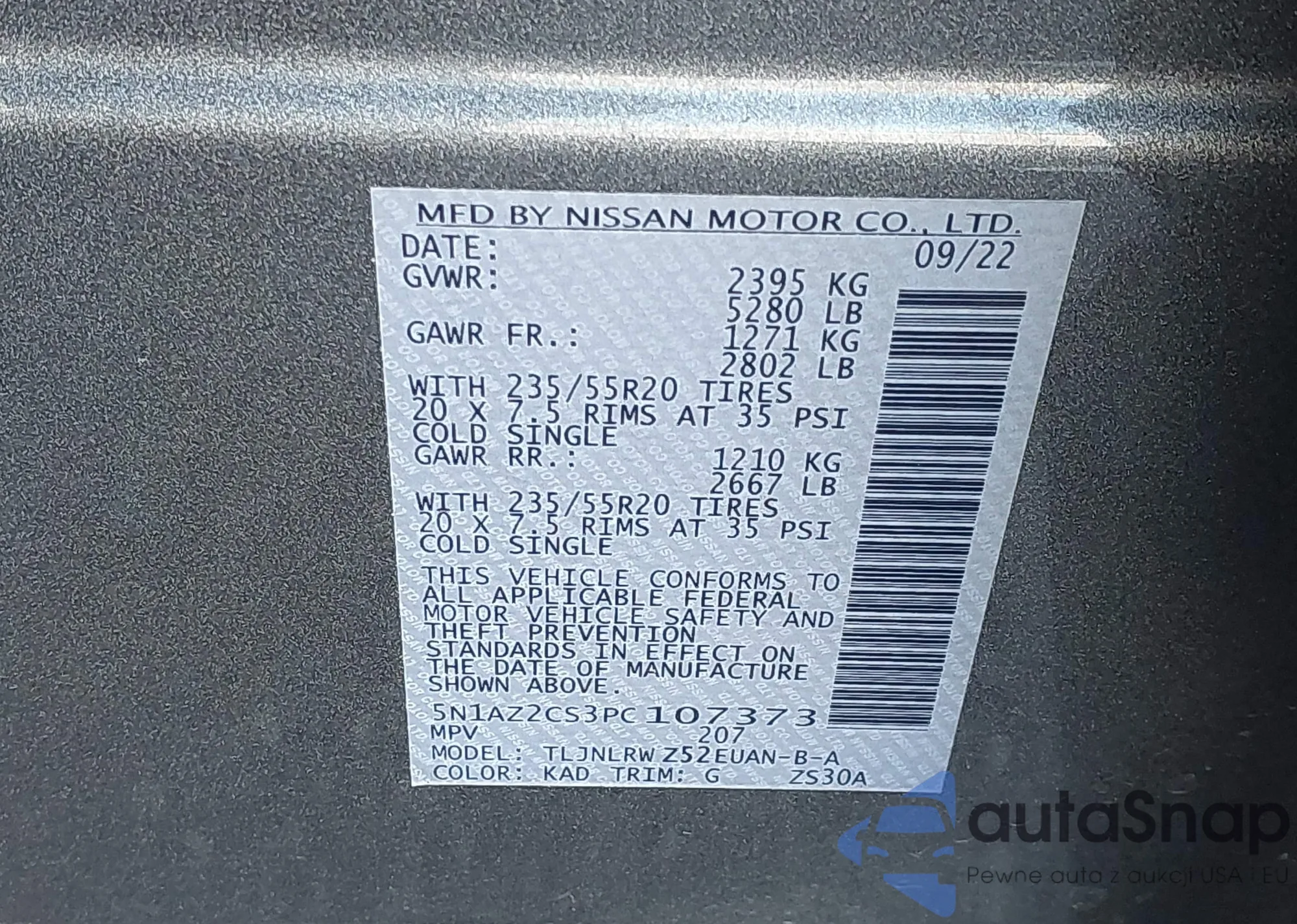 • VIN 5N1AZ2CS3PC107373