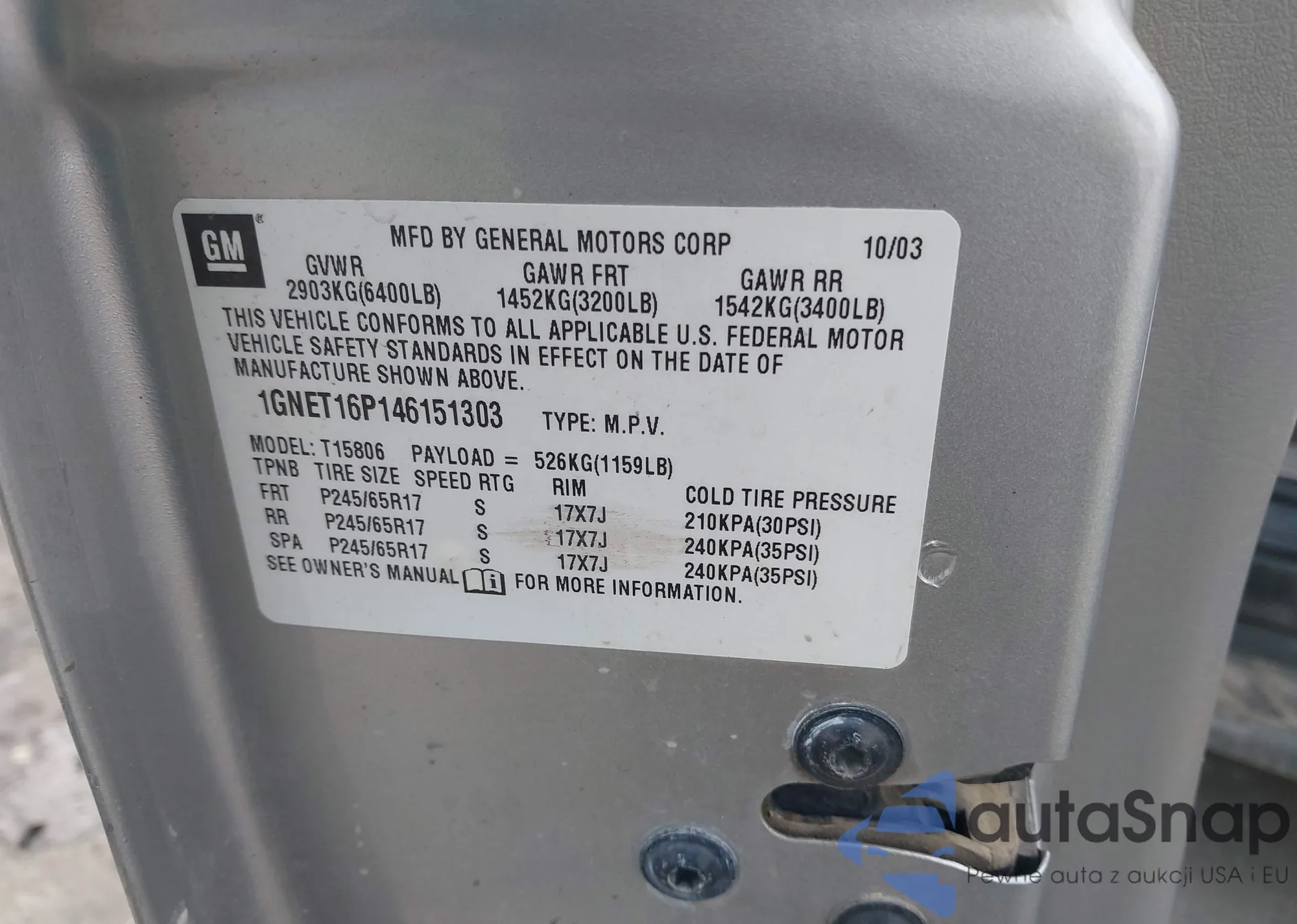 • VIN 3GKFK16TX1G198194