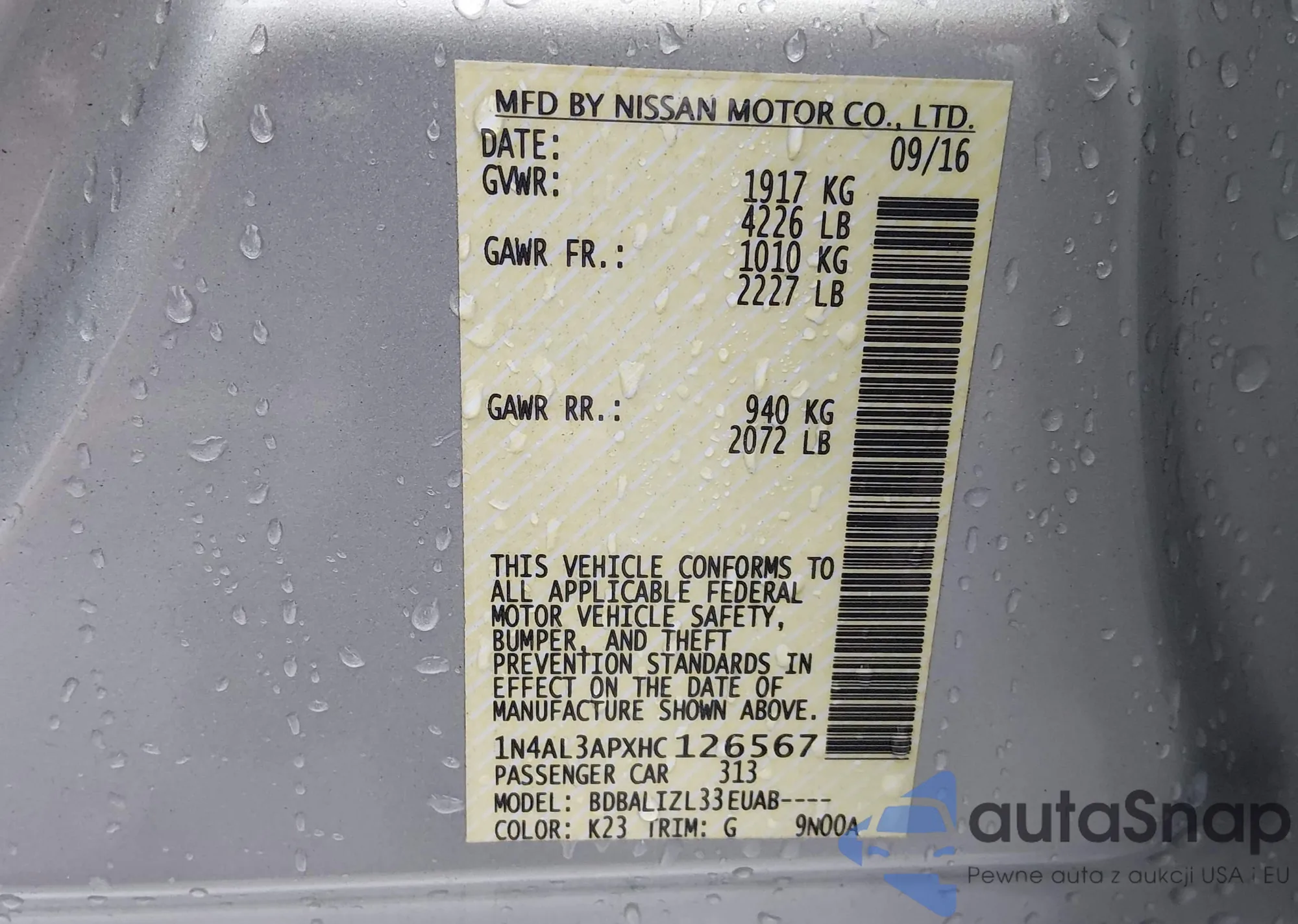 LOT: 43858385 VIN: 1N4AL3APXHC126567