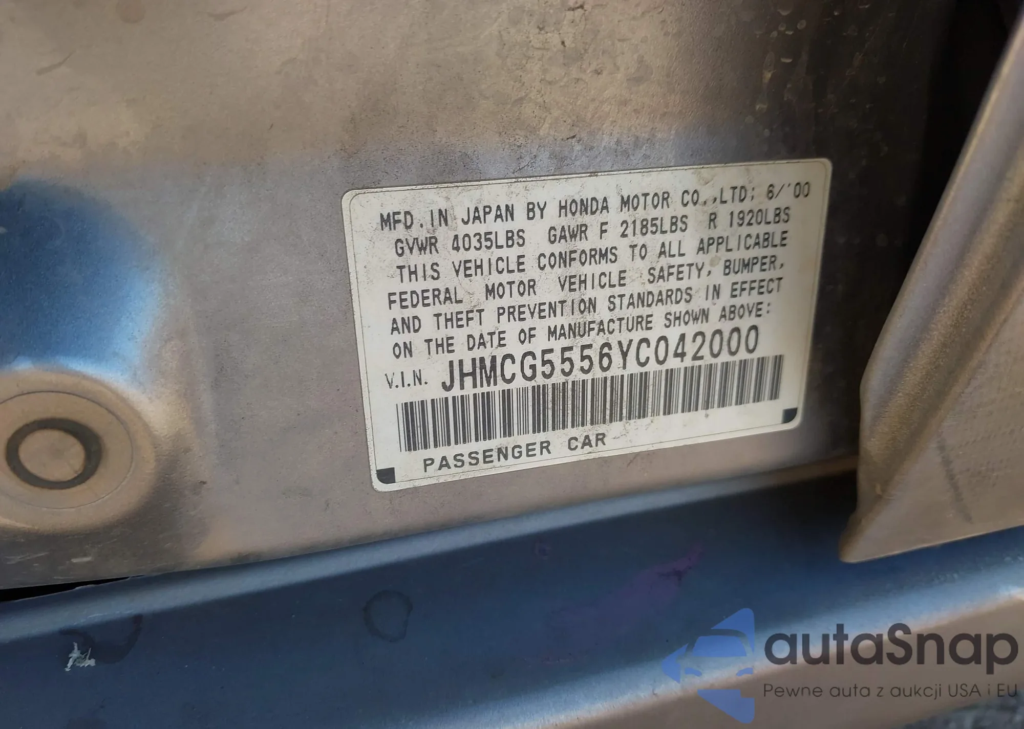 • VIN JHMCG5556YC042000