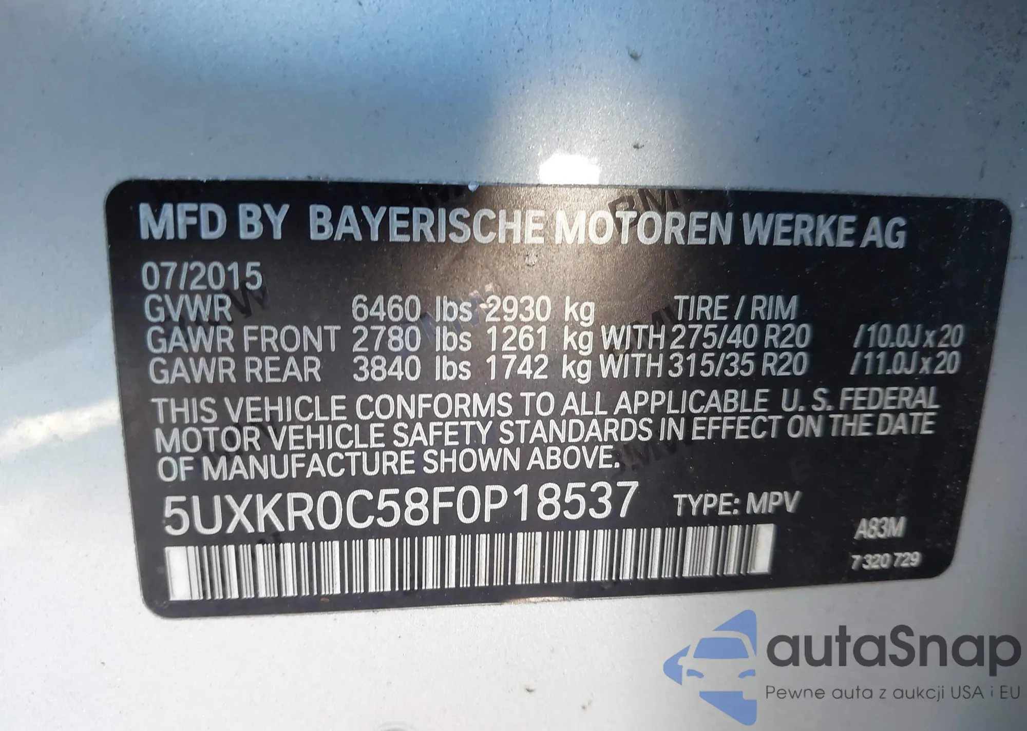 LOT: 43747314 VIN: 5UXKR0C58F0P18537