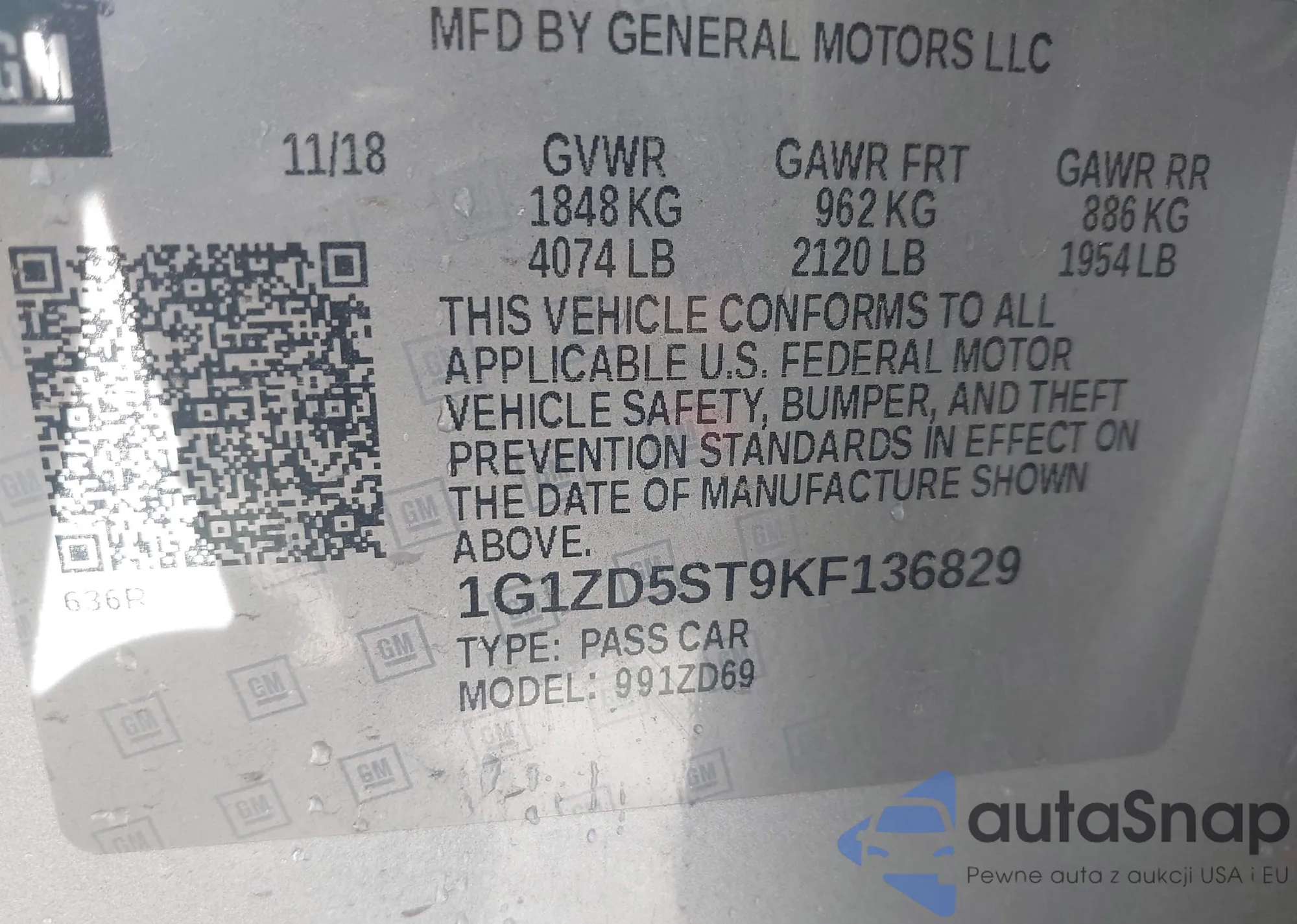 LOT: 43788267 VIN: 1G1ZD5ST9KF136829