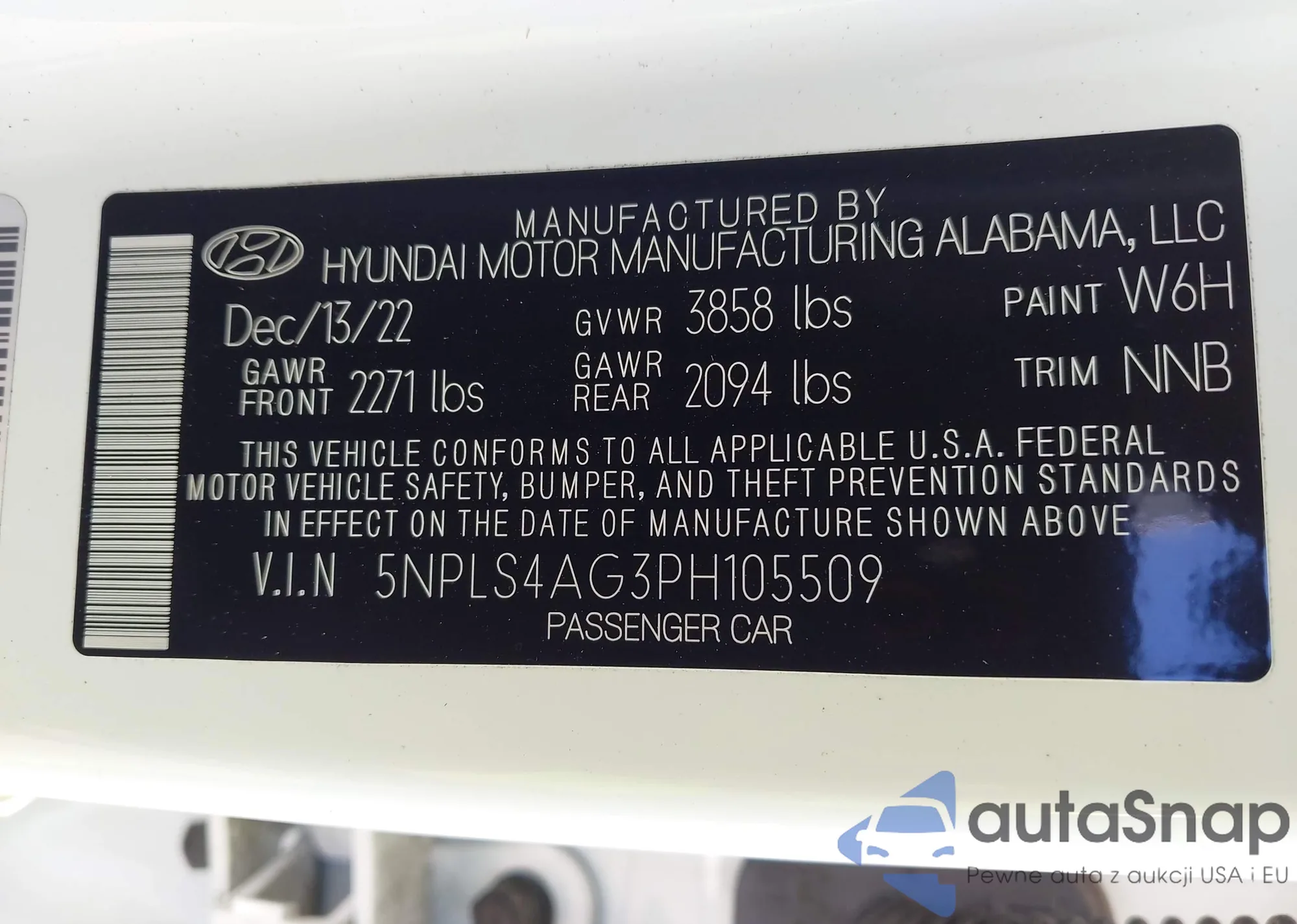 • VIN 5NPLS4AG3PH105509