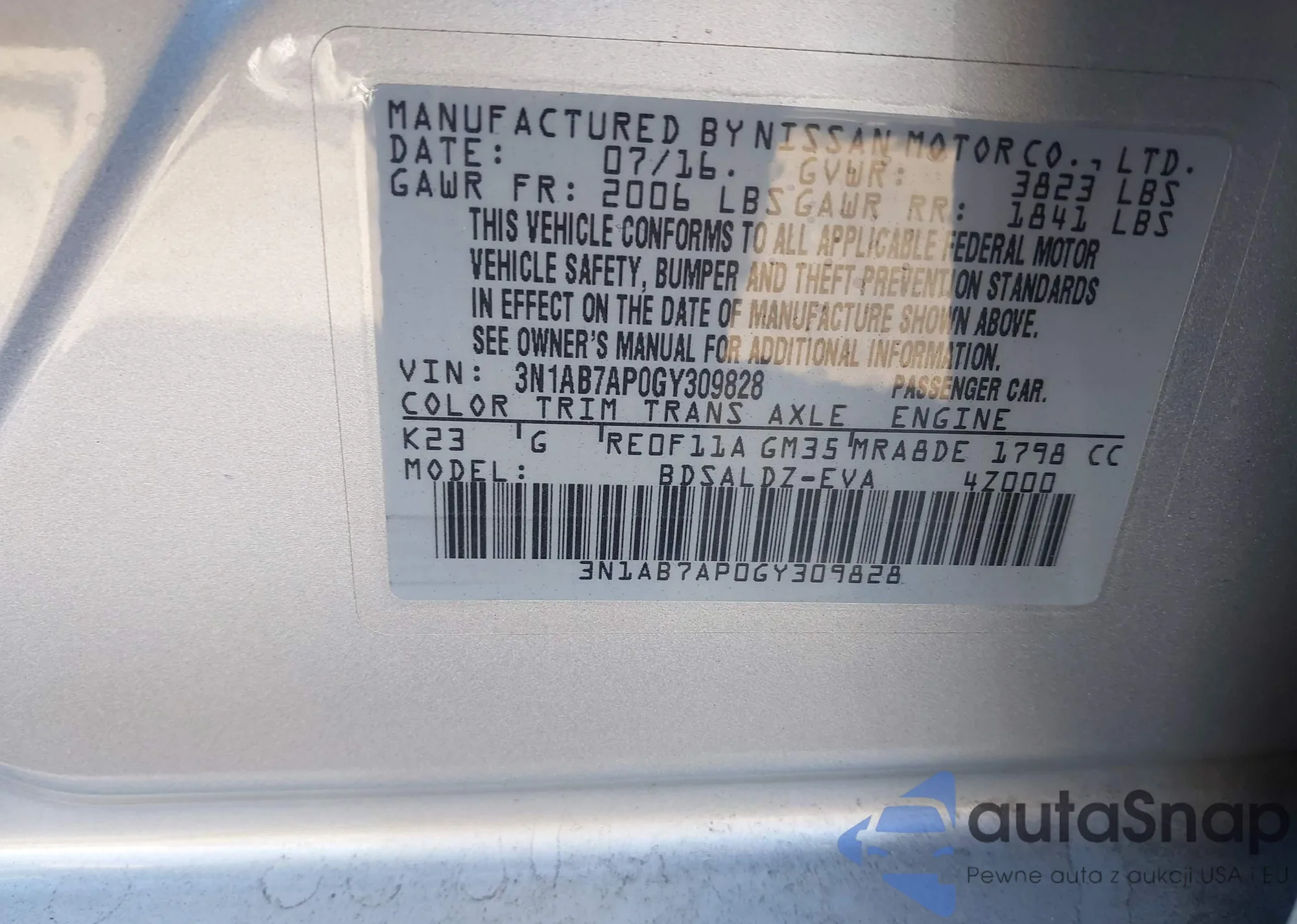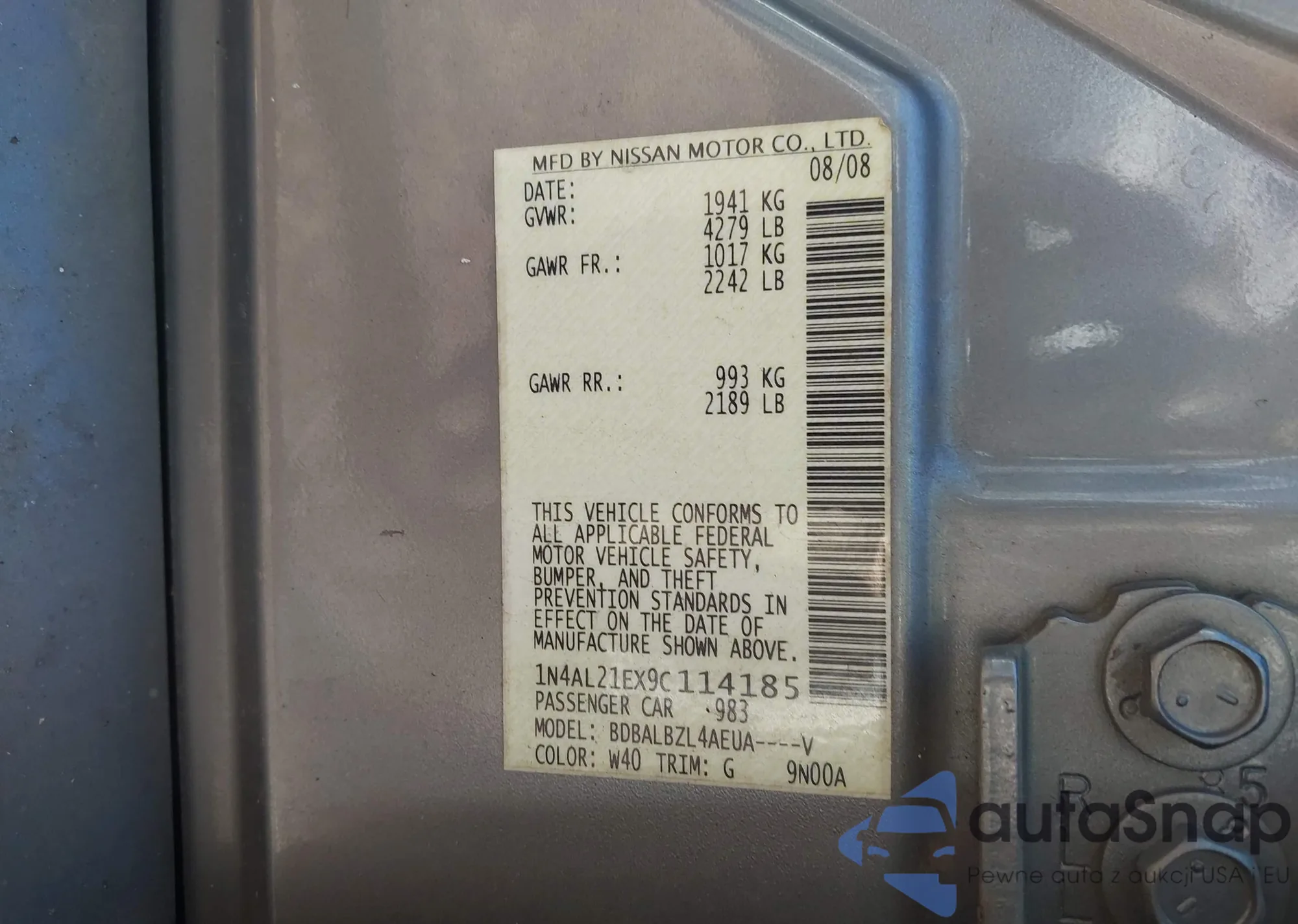 LOT: 43801478 VIN: 1N4AL21EX9C114185