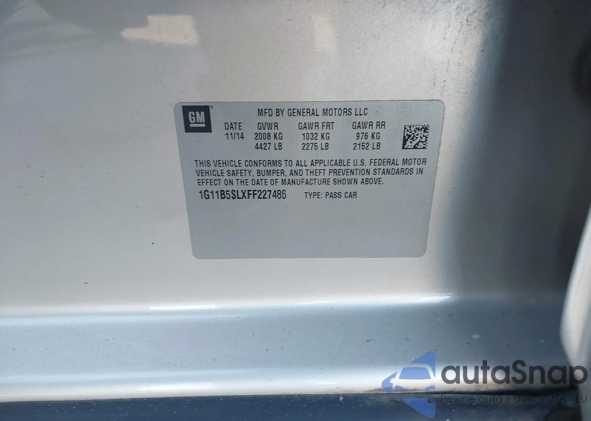 2015 Chevrolet Malibu Ls from USA, damaged, VIN 1G11B5SLXFF227486