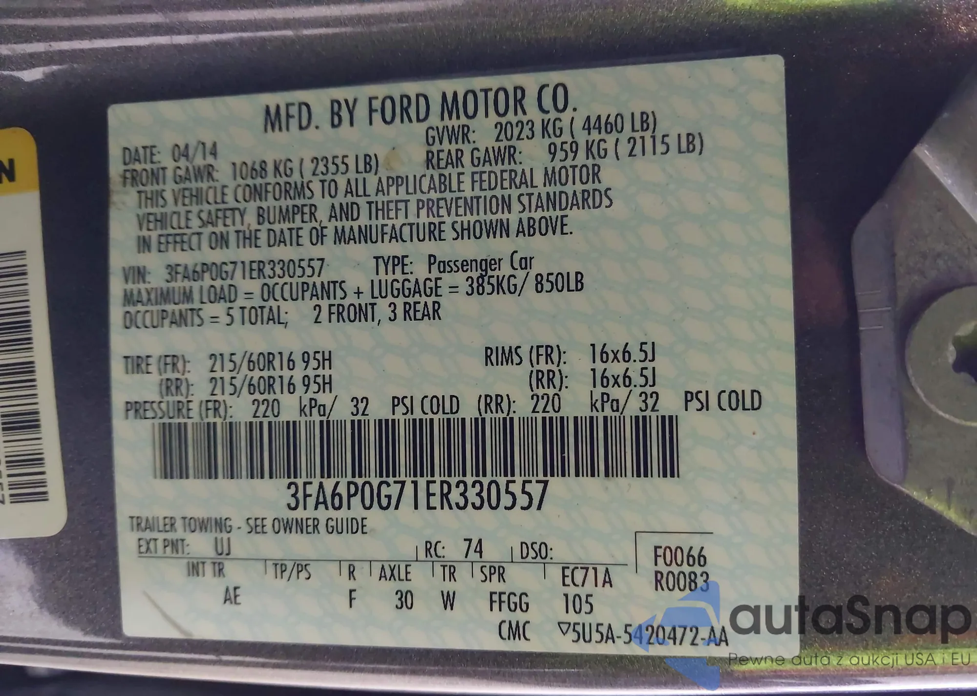 • VIN 3FA6P0G71ER330557