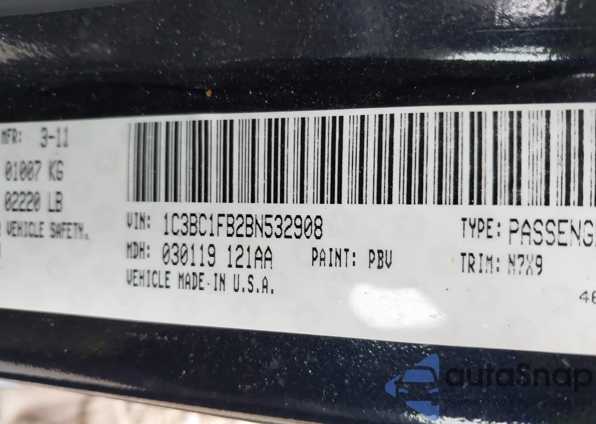 • VIN 1C3BC1FB2BN532908