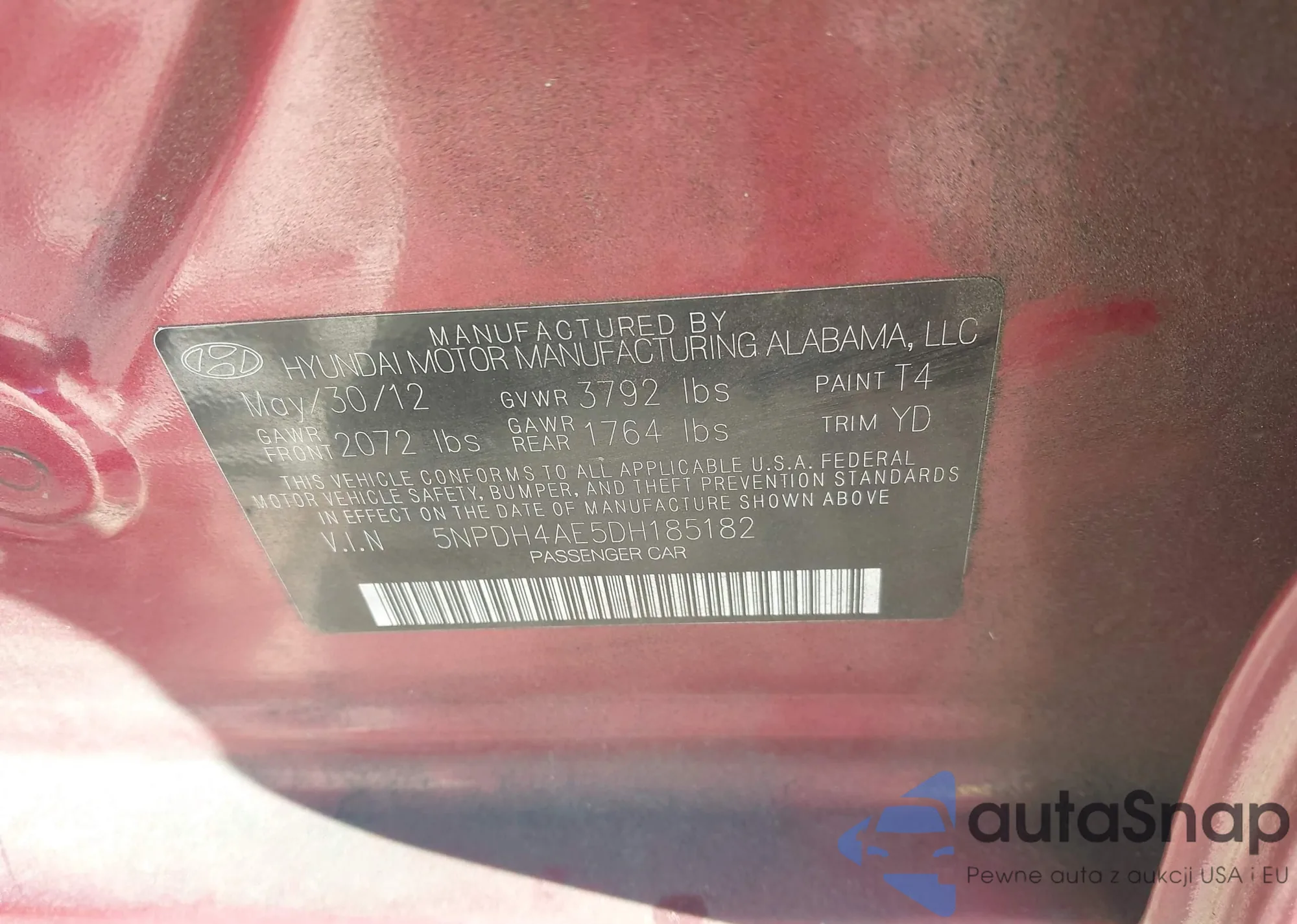 LOT: 43867452 VIN: 5NPDH4AE5DH185182