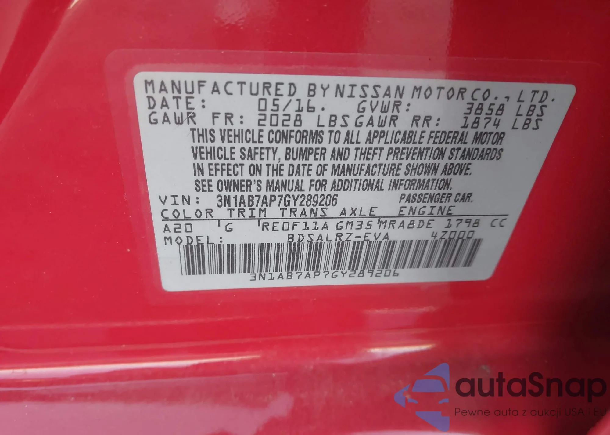 • VIN 3N1AB7AP7GY289206