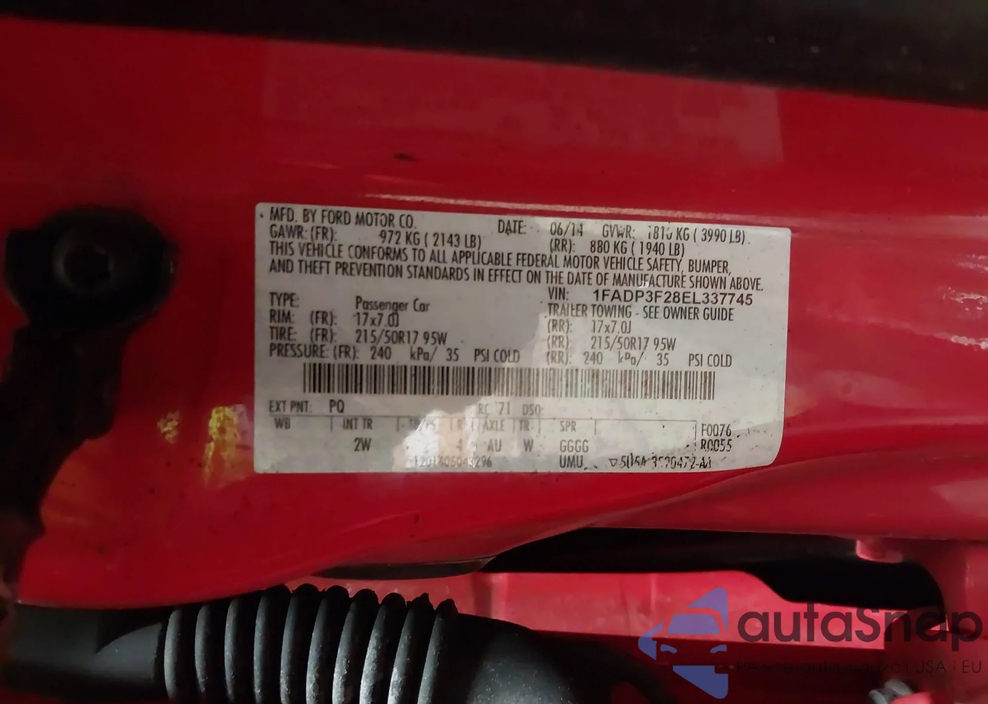 LOT: 43939483 VIN: 1FADP3F28EL337745