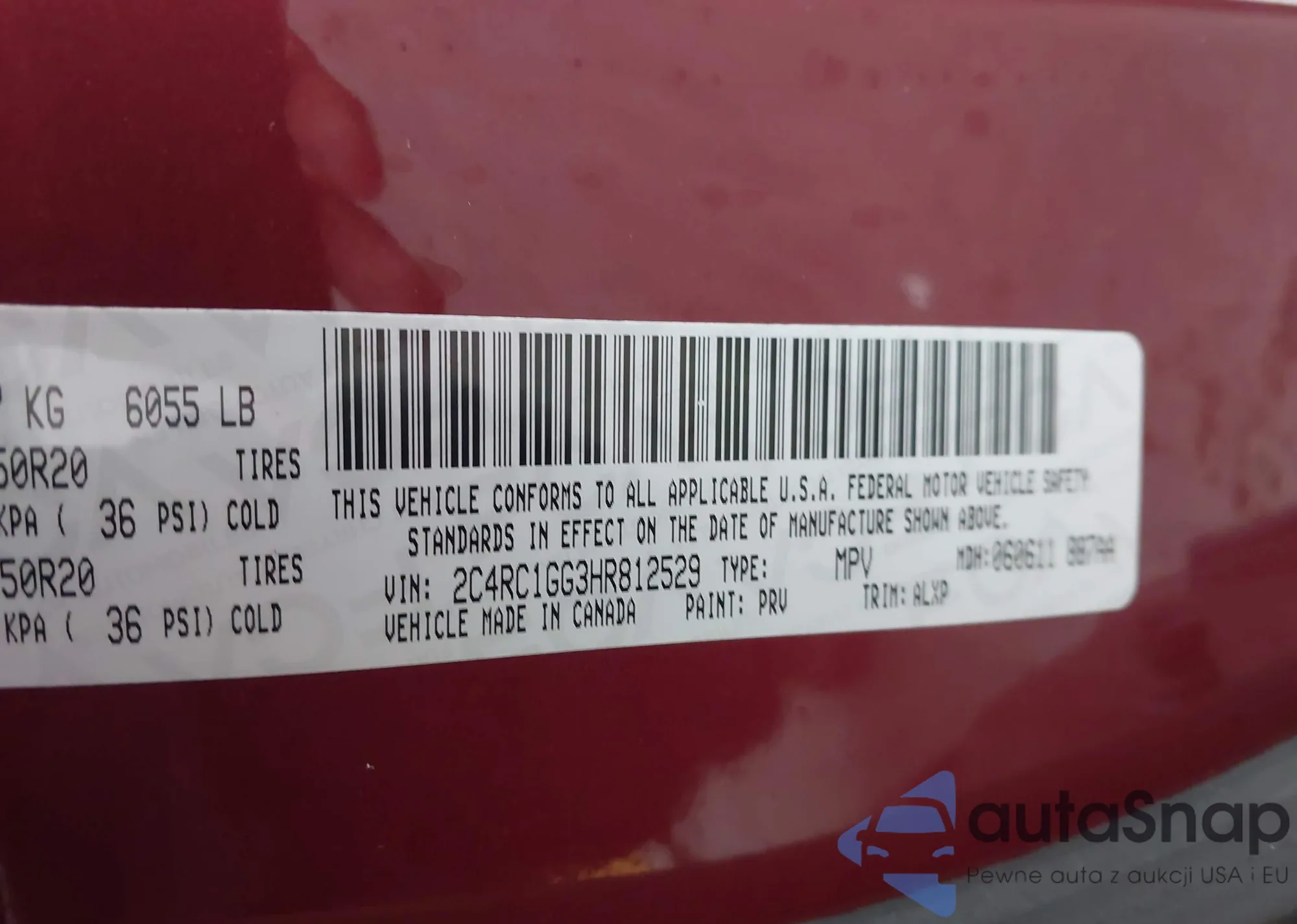• VIN 2C4RC1GG3HR812529