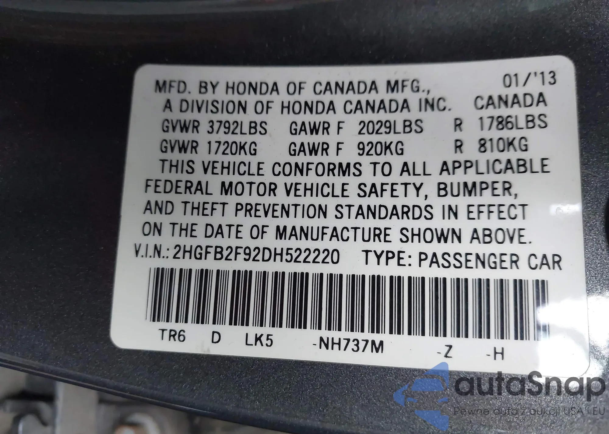 • VIN 1HGCV1F13JA154672