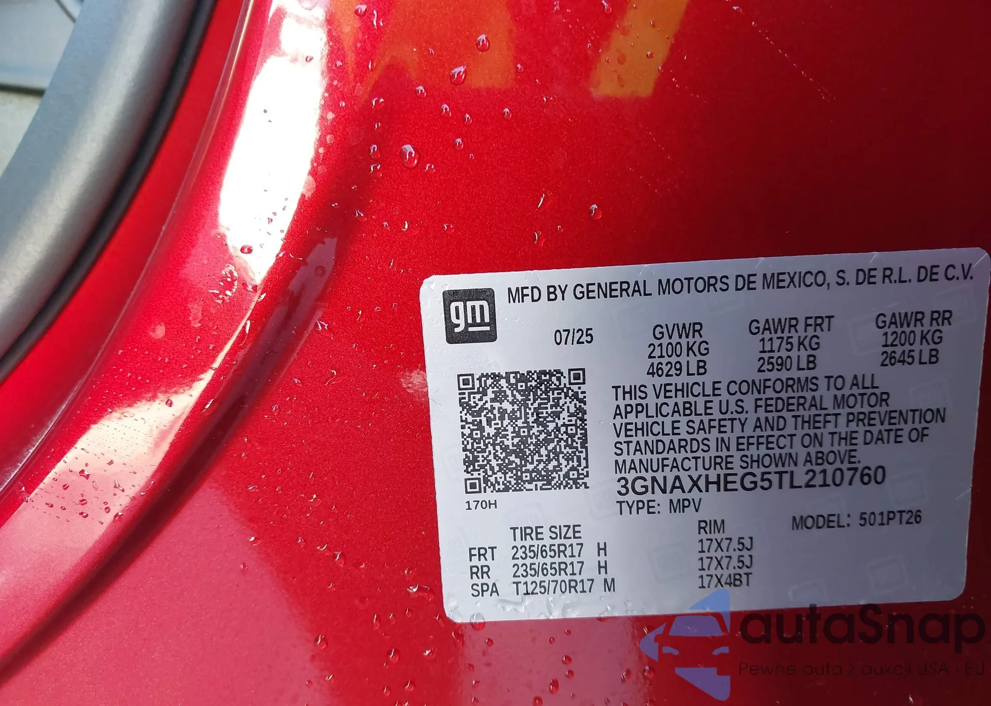 LOT: 43614630 VIN: 3GNAXHEG5TL210760