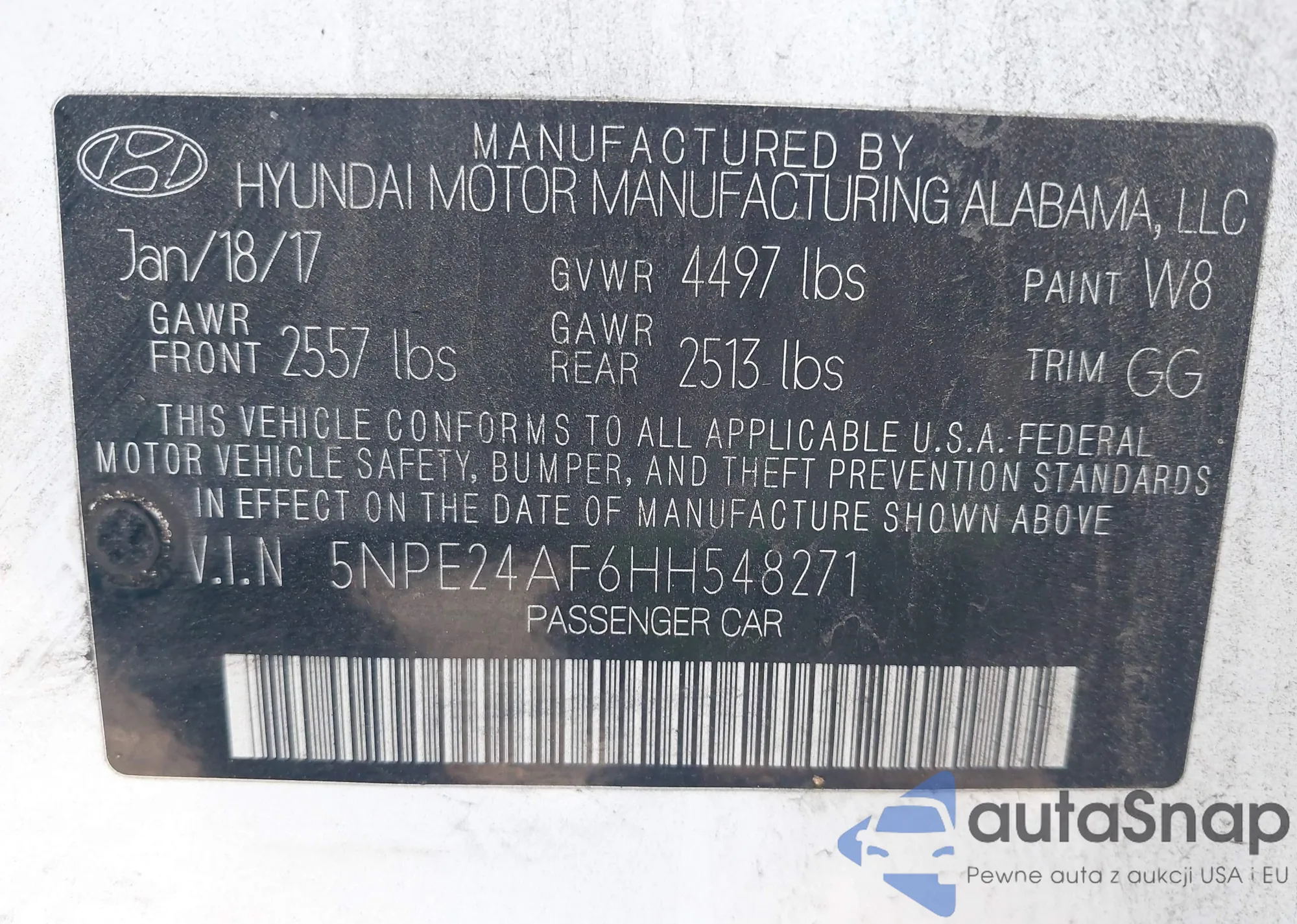 • VIN 5NPE24AF6HH548271