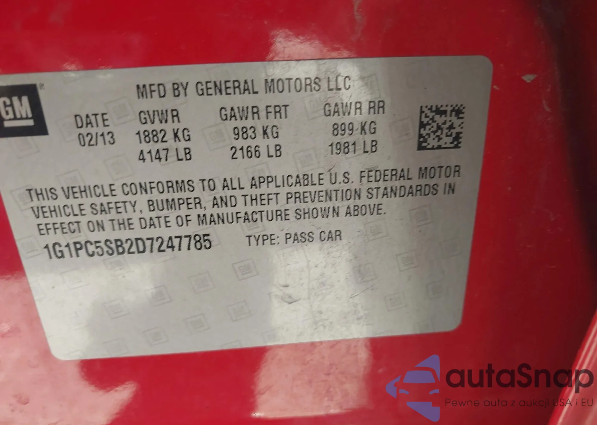 LOT: 43581792 VIN: 1G1PC5SB2D7247785