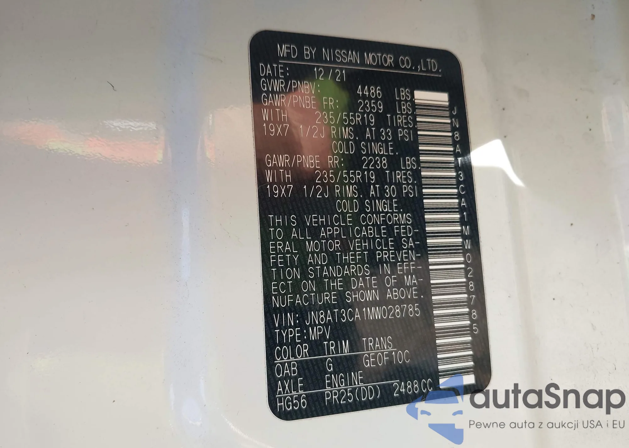 LOT: 43602965 VIN: JN8AT3CA1MW028785
