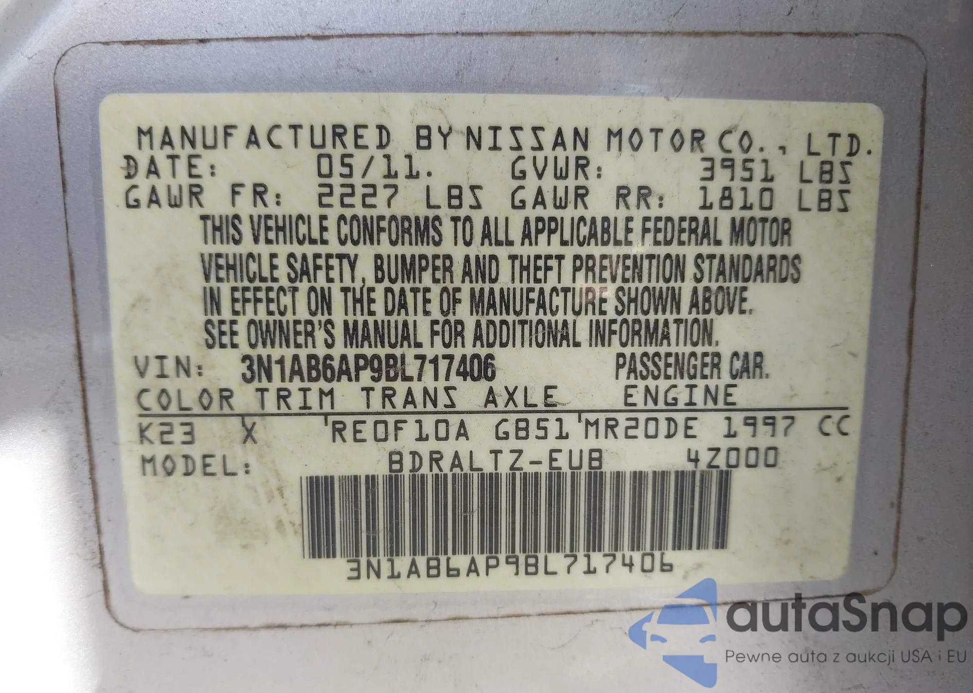 • VIN 1N4BL4BV4LC219052