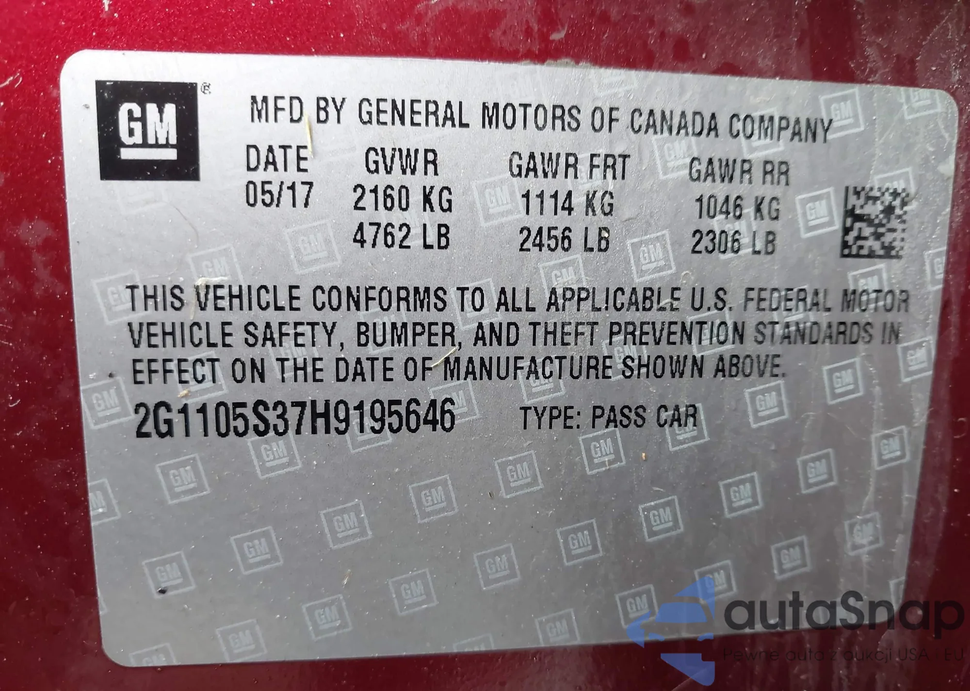 • VIN 7SAXCBE67RF457369