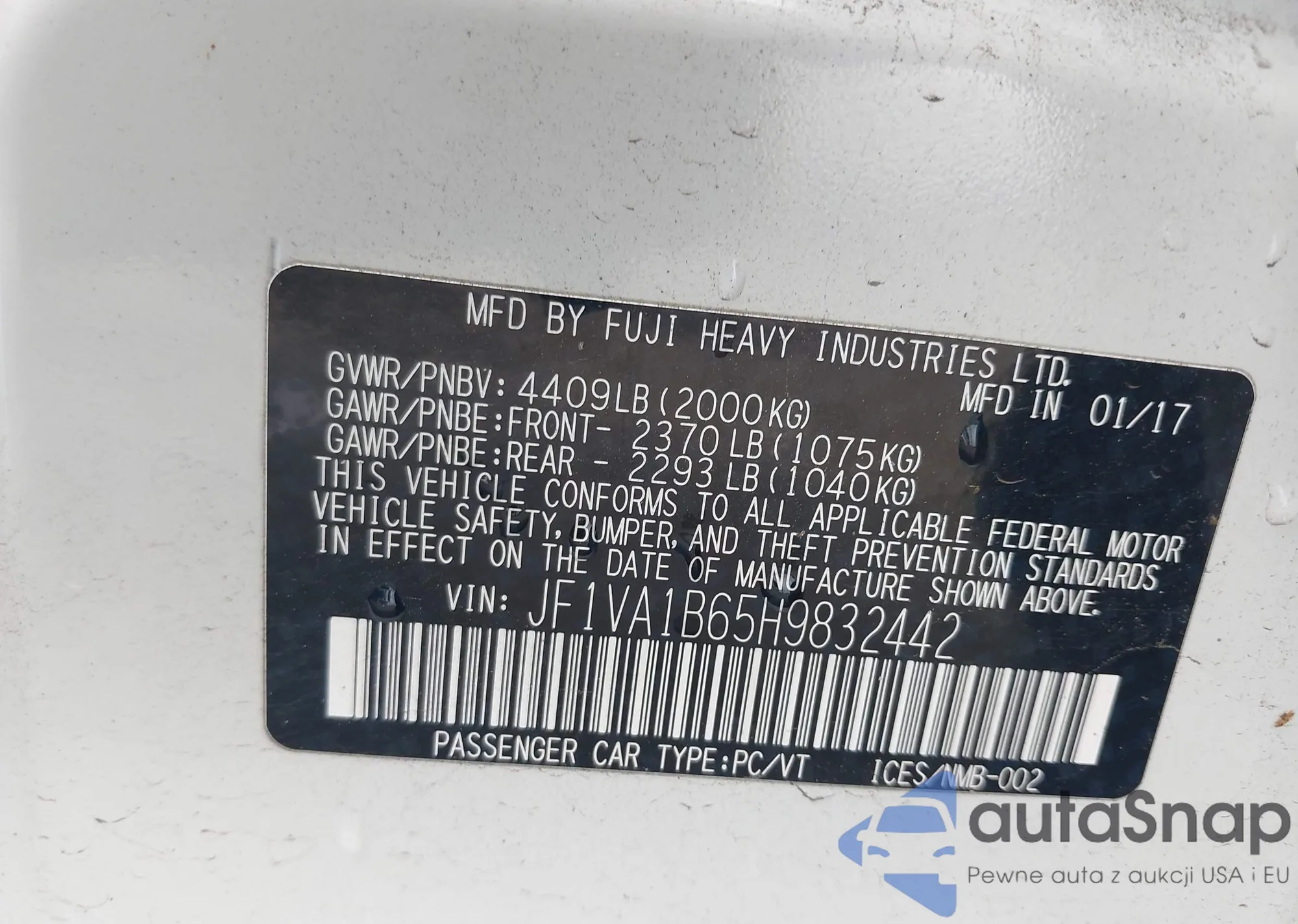 LOT: 43664287 VIN: JF1VA1B65H9832442