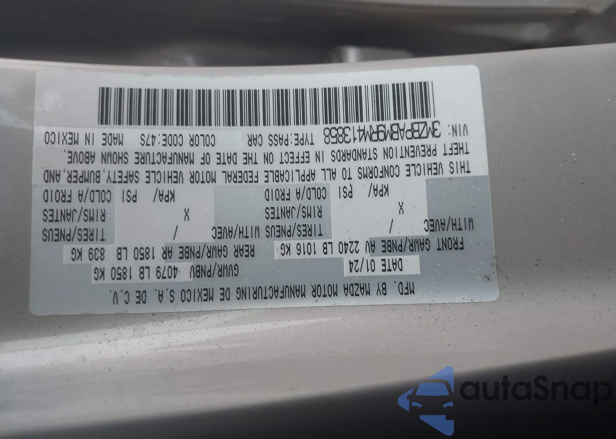 • VIN 3MZBPABM9RM413858