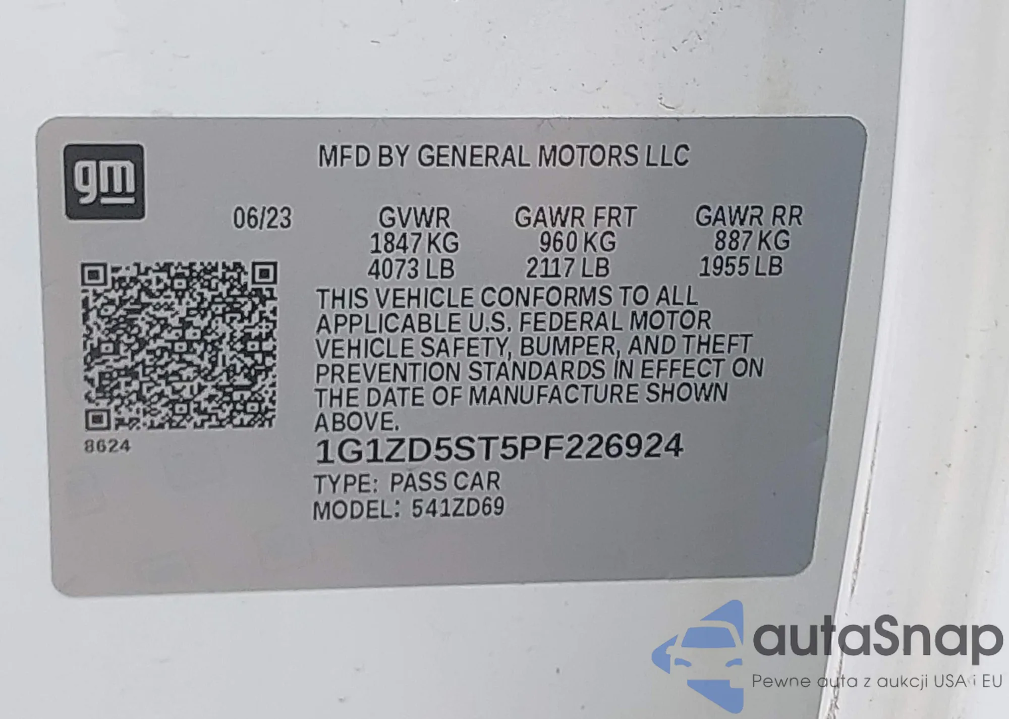 LOT: 43673549 VIN: 1G1ZD5ST5PF226924