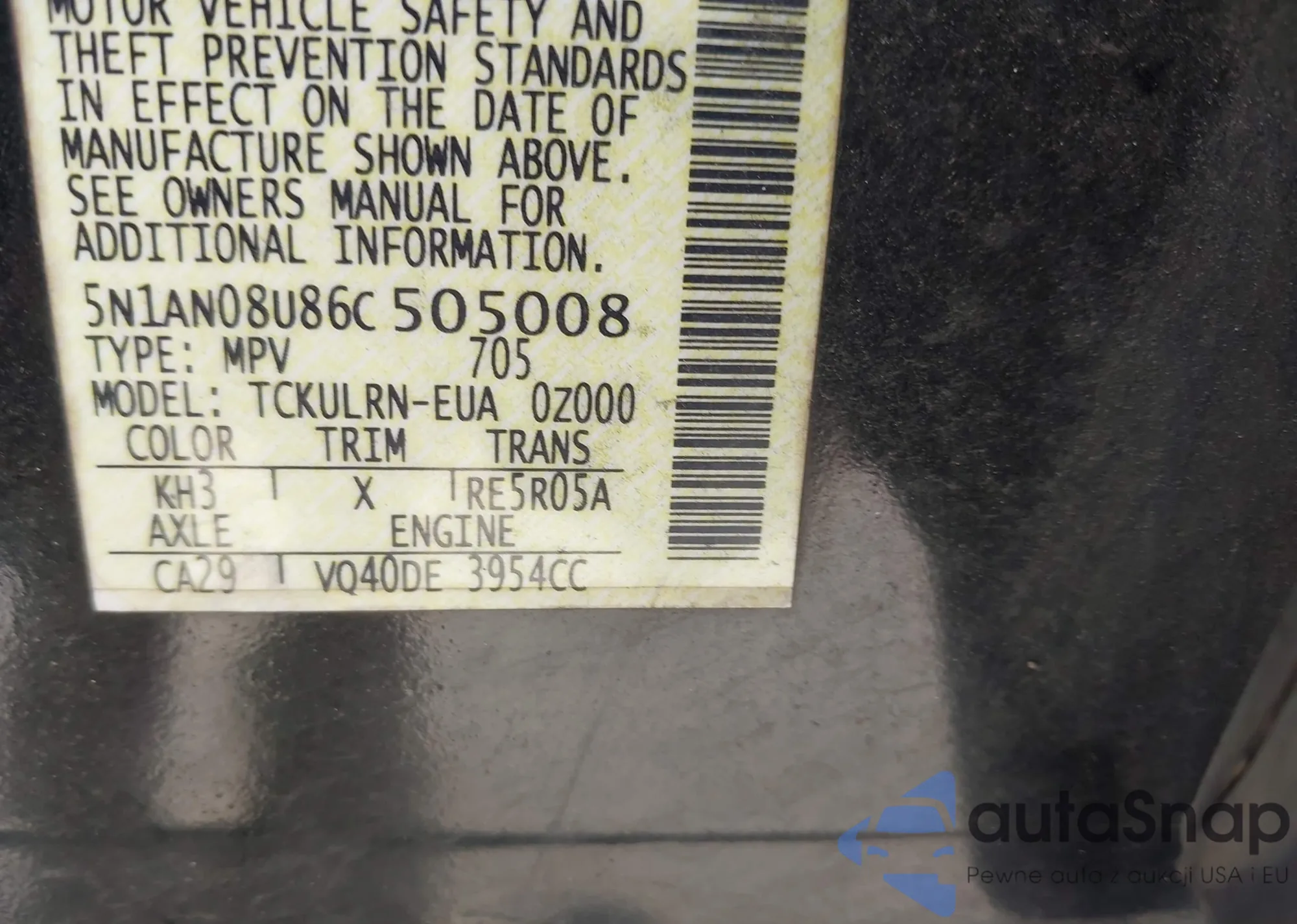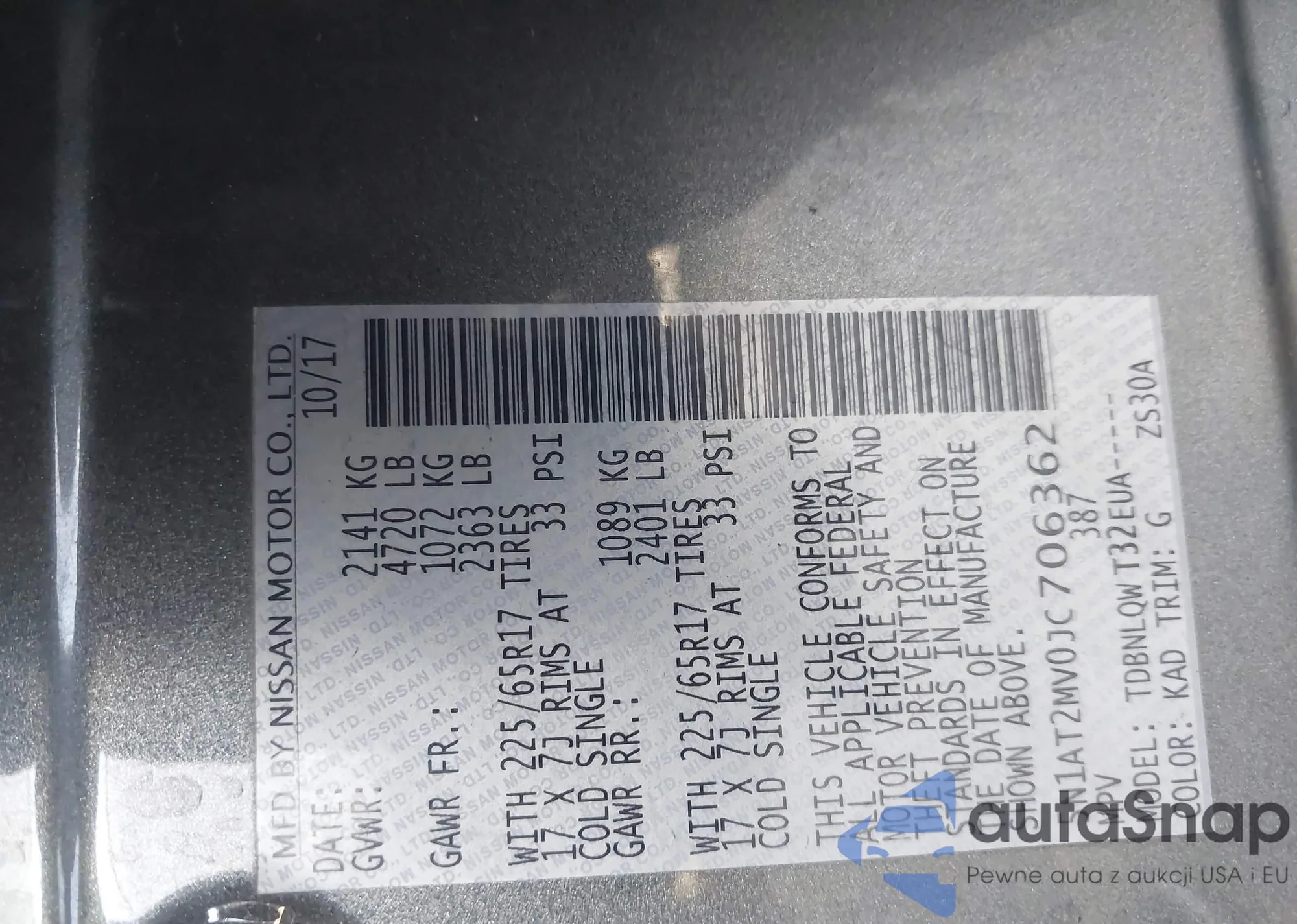 • VIN 5N1AT2MV0JC706362